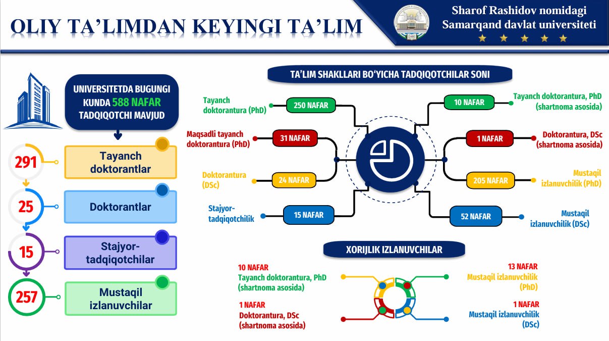 Oliy ta’limdan keyingi ta’lim − doktorlik dissertatsiyasini tayyorlash va himoya qilish maqsadida mutaxassislikni chuqur o‘rganishni va ilmiy izlanishlar olib borishni nazarda tutadigan tayanch doktorantura, doktorantura va mustaqil izlanuvchanlik asosida ilmiy darajaga ega ilmiy va ilmiy-pedagogik kadrlar tayyorlashni ta’minlaydigan ta’lim turi.