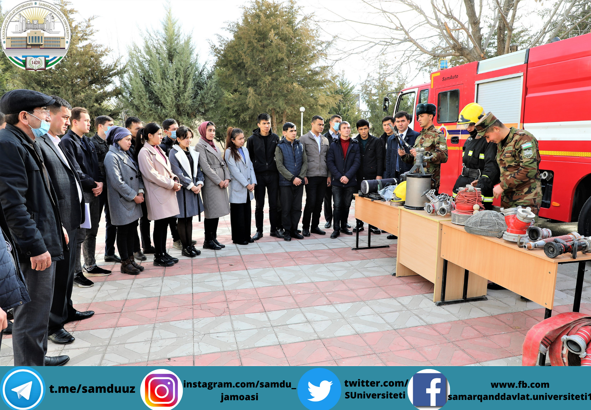 Самарқанд давлат университети рақамли технологиялар факултетида ёнғин билан боғлиқ бўлган фавқулодда вазиятларни олдини олиш бўйича давра суҳбати бўлиб ўтди. Семинарда Самарқанд вилояти фавқулодда вазиятлар бошқармаси, СамДУ Фуқоролар ҳимояси ва меҳнат муҳофазаси бўлими мутахассислари иштирок этди.