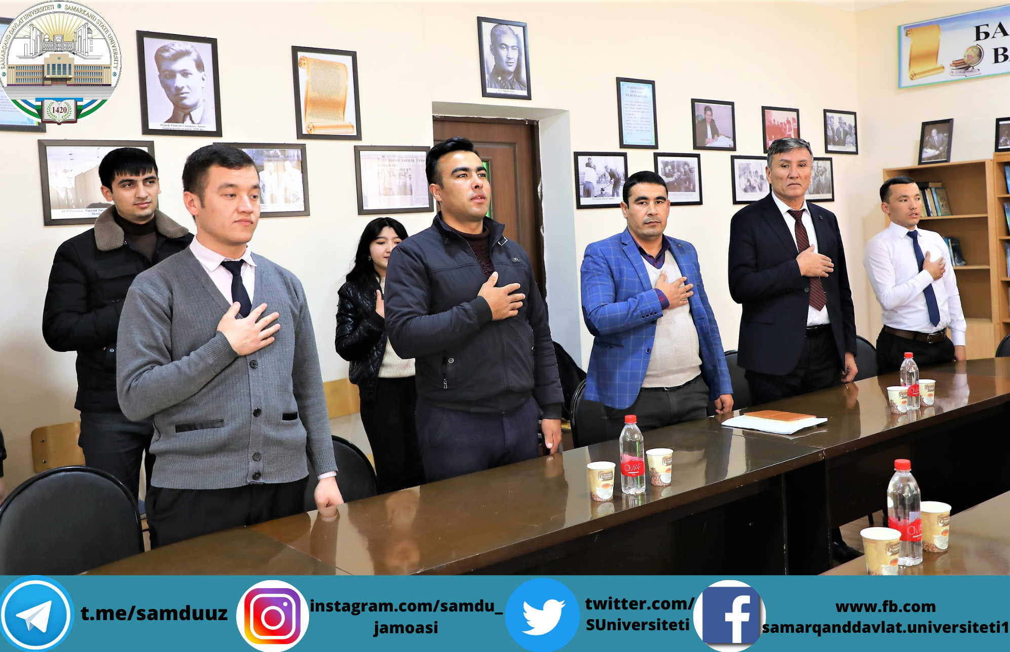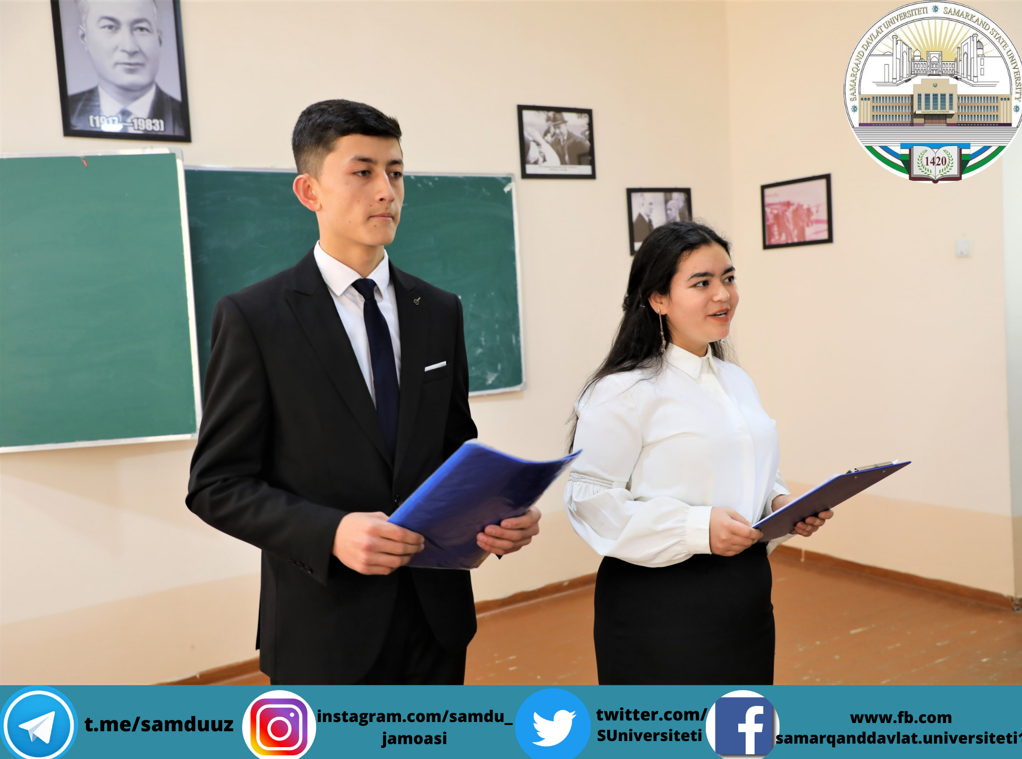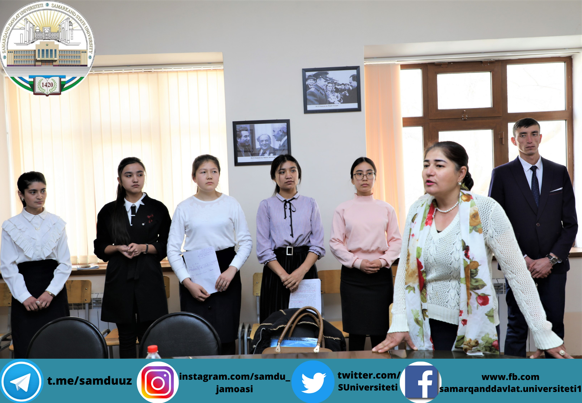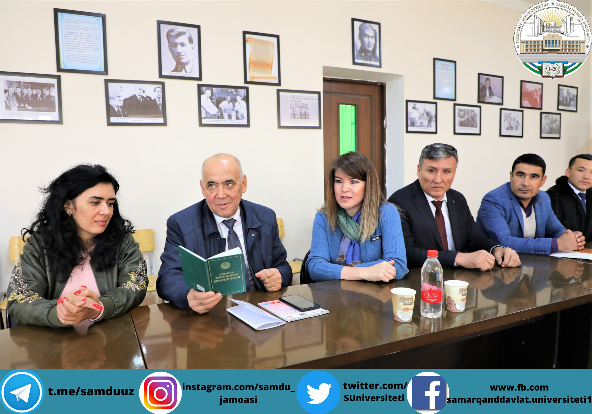 Самарқанд давлат университети психология ва ижтимоий муносабатлар факультетида “Ўзбекистон Республикаси Конституцияси - бахтимиз пойдевори” мавзусида тадбир бўлиб ўтди. Уни факультет декани, профессор Шаҳзода Негматова очиб, барча иштирокчиларни байрам муносабати билан табриклади.