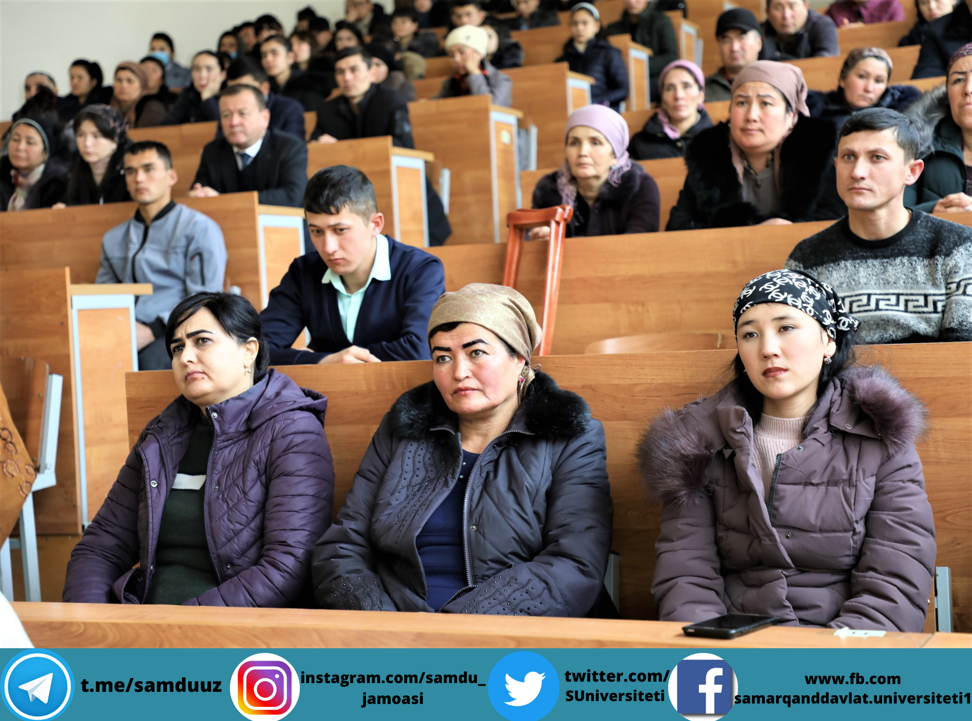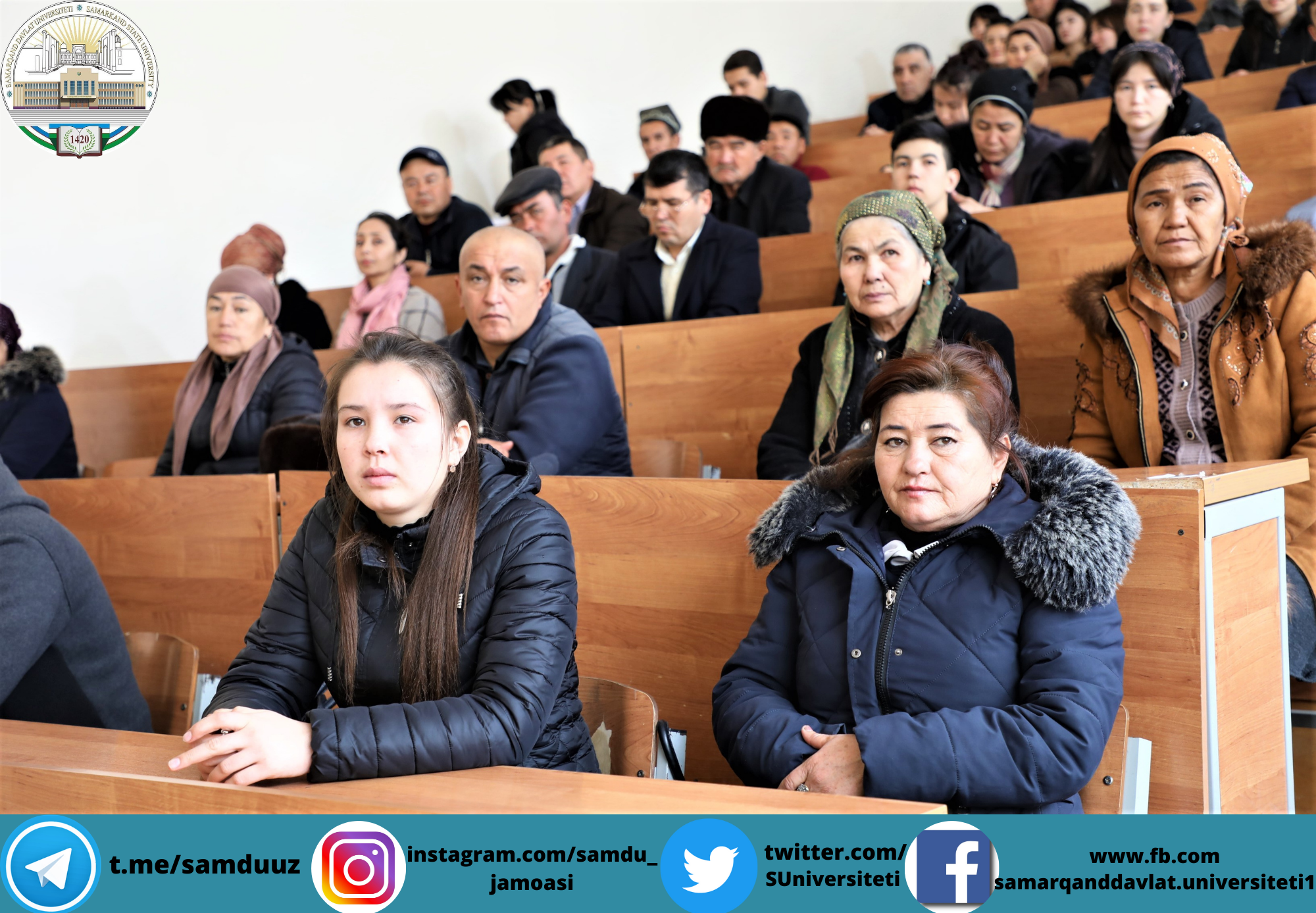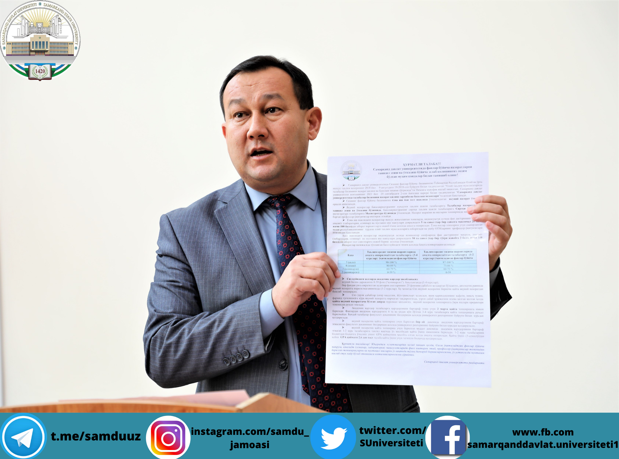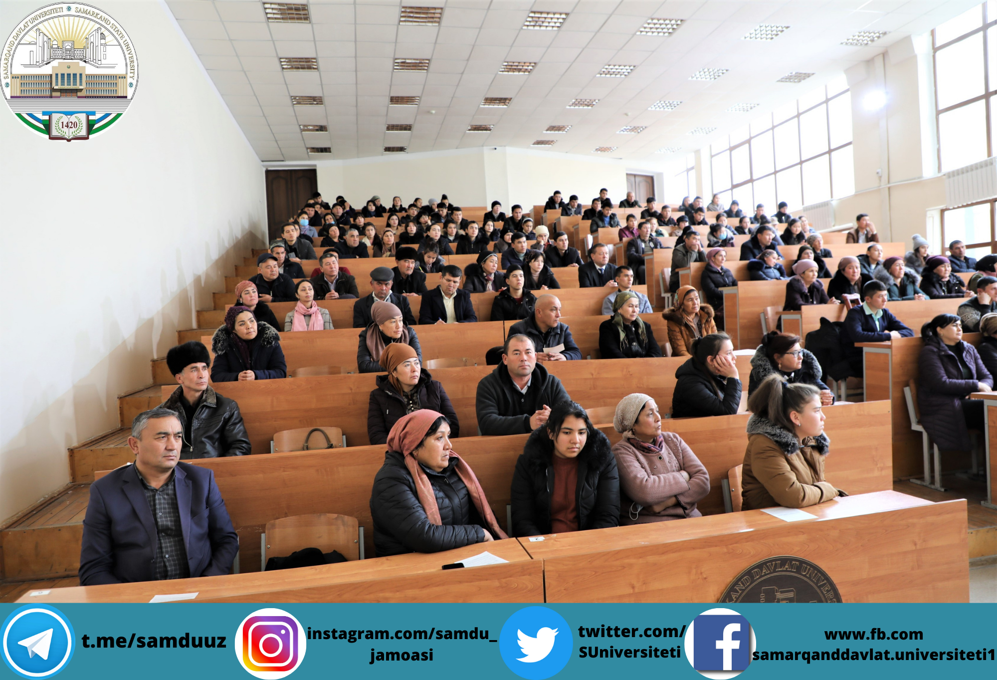 Самарқанд давлат университети кимё факультети талабаларининг ота-оналари учун давра суҳбати бўлиб ўтди. Уни факультет декани, доцент Норйигит Мусурмонов очиб бериб, университет ҳаёти, баҳолаш тизими, яратилган имкониятлар бўйича батафсил маълумотлар берилди.