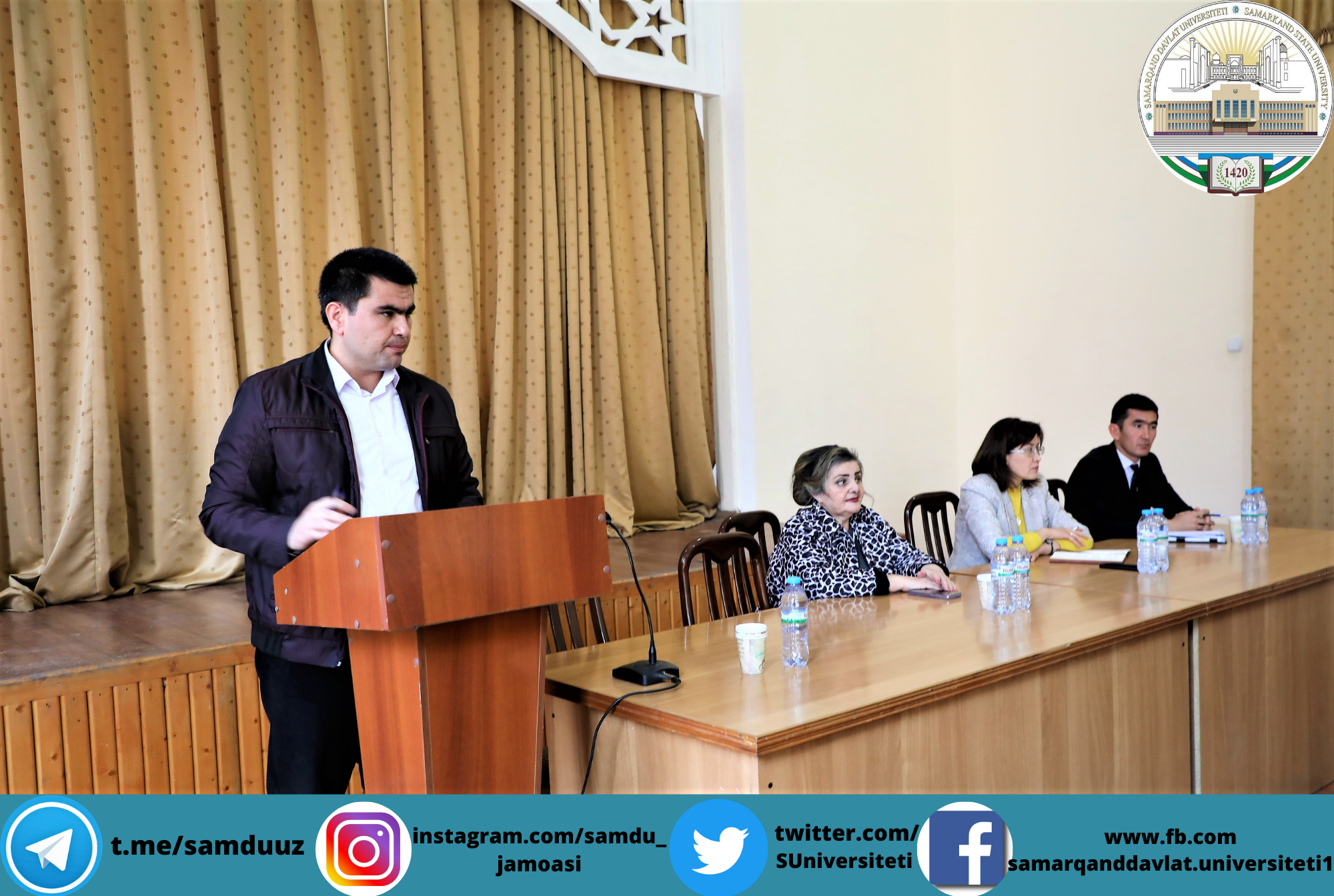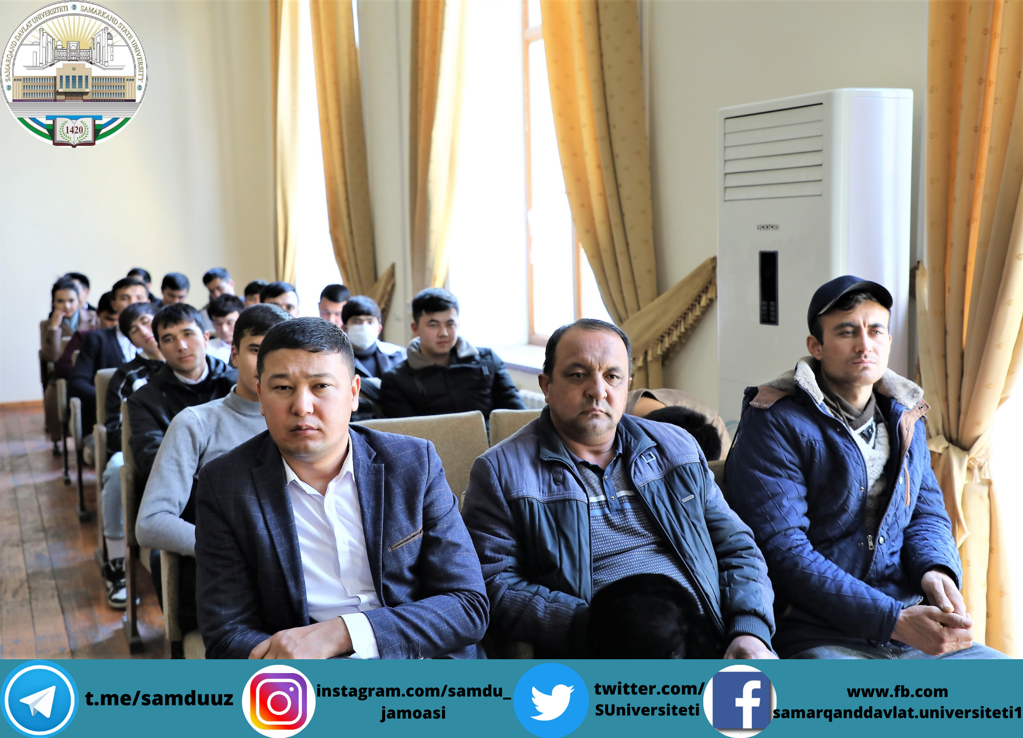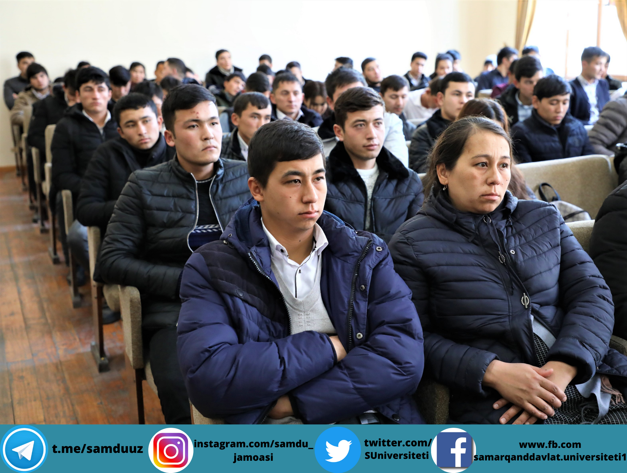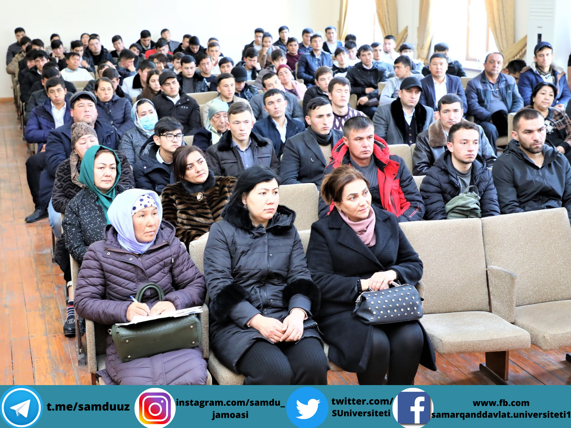 Самарқанд давлат университети халқаро таълим дастурлари факультети талабаларининг ота-оналари учун йиғилиш бўлиб ўтди. Уни факультет декани, доцент Тўлқин Ўрозов очиб бериб, университет ҳаёти, баҳолаш тизими, яратилган имкониятлар бўйича батафсил маълумотлар берилди.