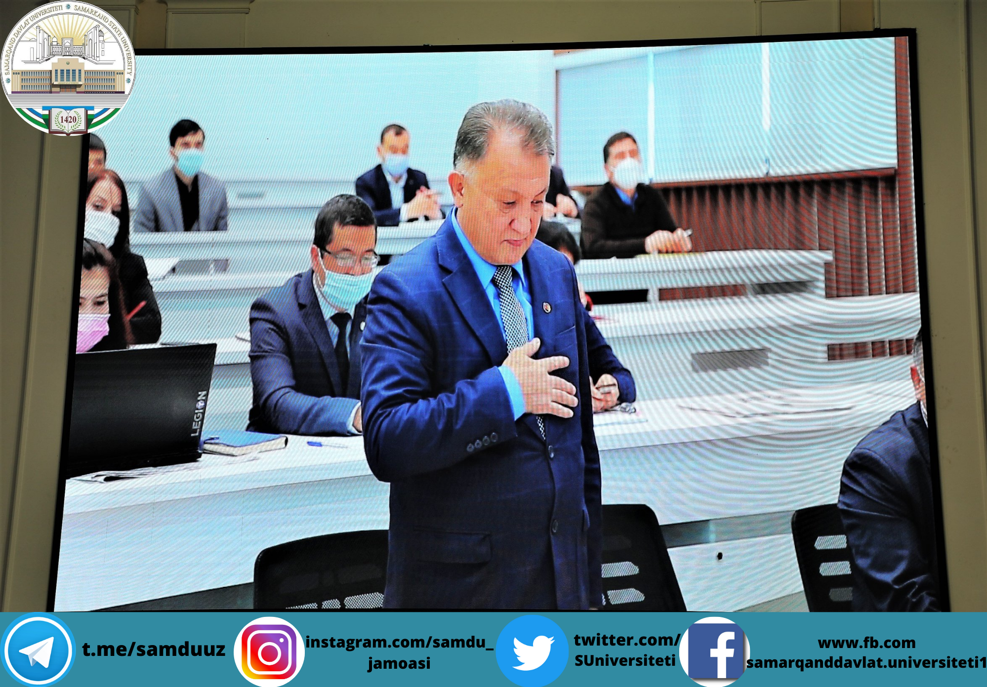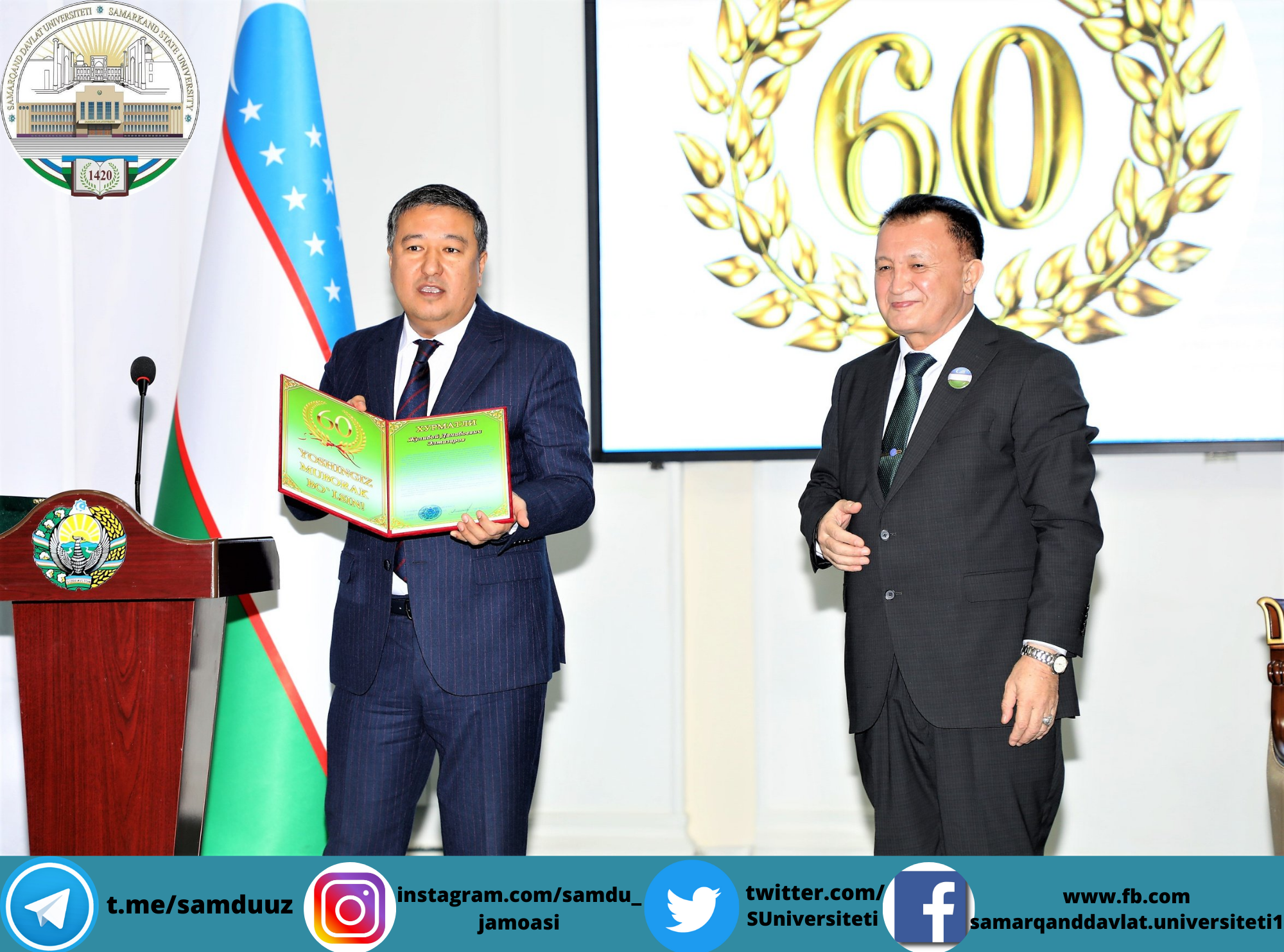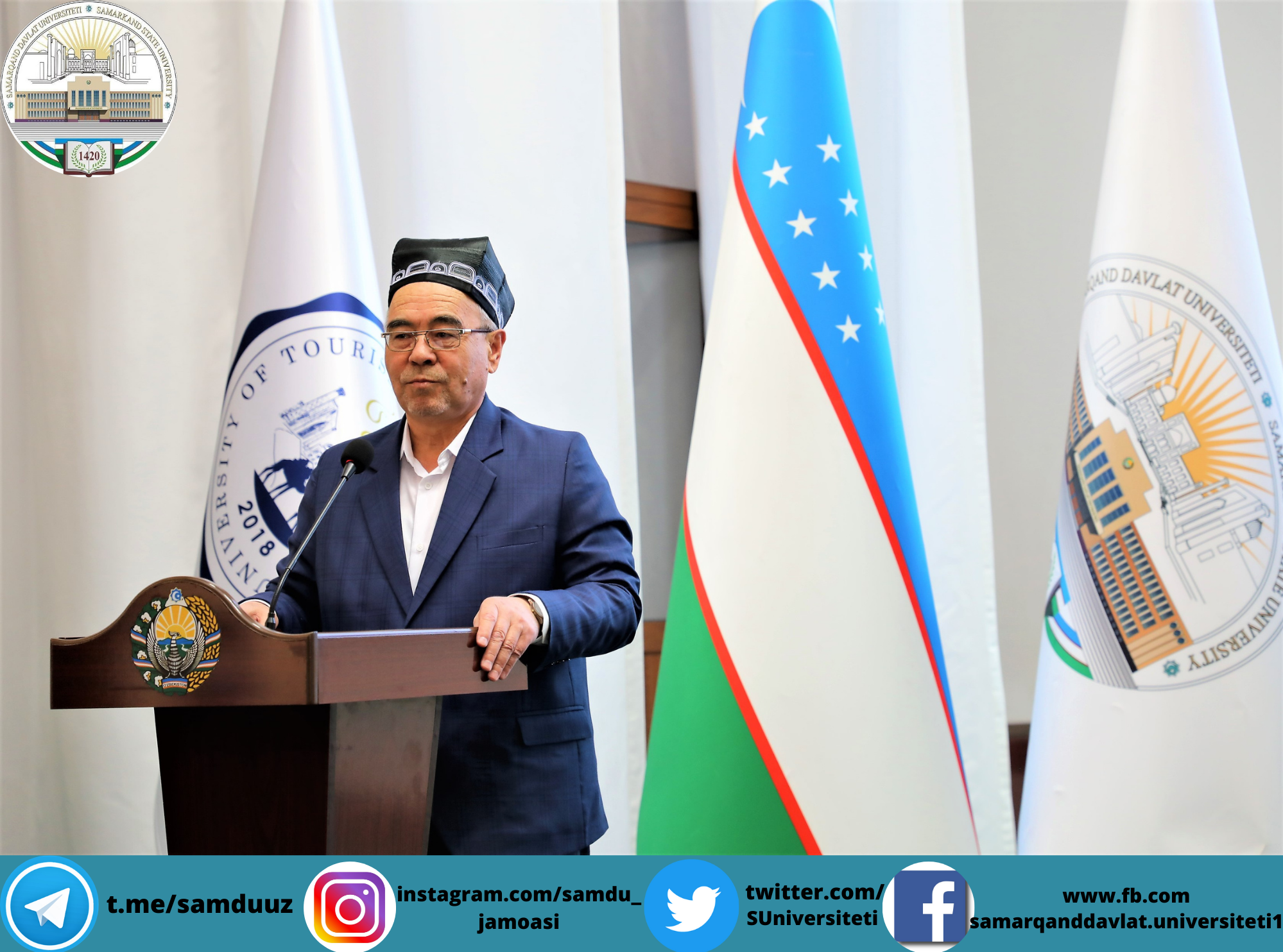 Тадбирни Самарқанд давлат университети ўқув ишлари бўйича проректори, профессор Аҳмаджон Солиев очиб, университет ректори, Олий Мажлис Сенати аъзоси, профессор Рустам Холмуродовнинг табригини ўқиб эшиттирди ва эсдалик совғалари топширди.
