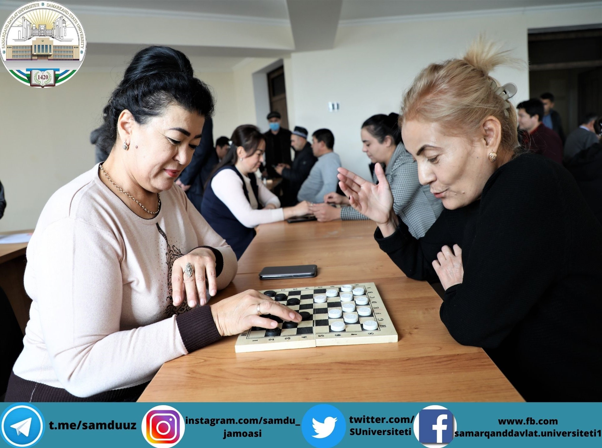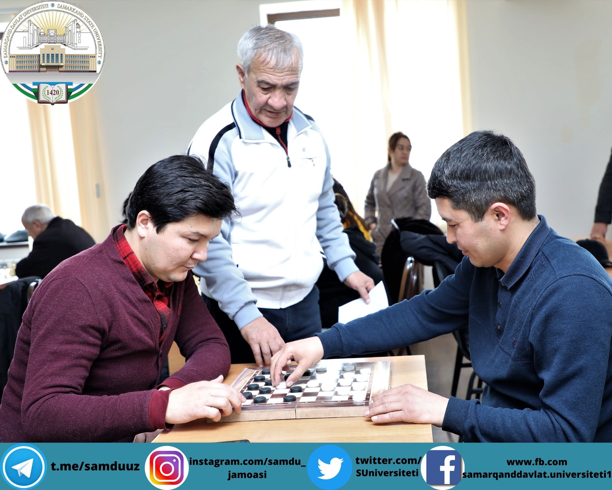 Самарқанд давлат университети профессор-ўқитувчилари ўртасида спортнинг шахмат-шашка туридан турнир бўлиб ўтди. Ушбу турнир қизғин руҳда, кўтаринки кайфиятда ўтди.