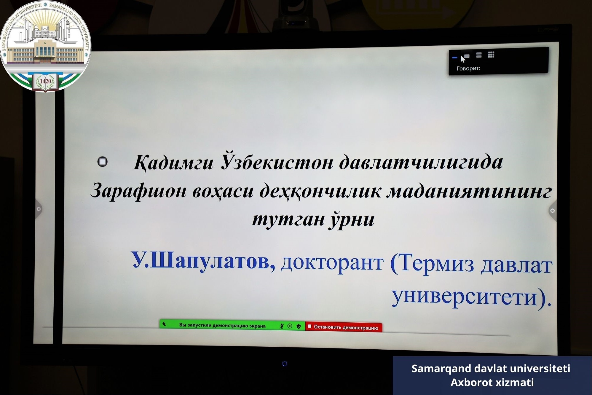 Самарқанд давлат университети ва ЎзР ФА Тарих институти томонидан “Ўзбек давлатчилиги тарихида Зарафшон воҳаси ва Самарқанд шаҳрининг тутган ўрни” мавзусидаги “Самарқанд ўқишлари-ИИ” республика илмий-амалий анжуман бўлиб ўтди. Ушбу конференция анъанавий тарзда ўтказиладиган минтақавий ўқишлар доирасида бўлиб, дастлабки анжуман “Самарқанд ўқишлари-И” 2018 йилда ўтказилган.