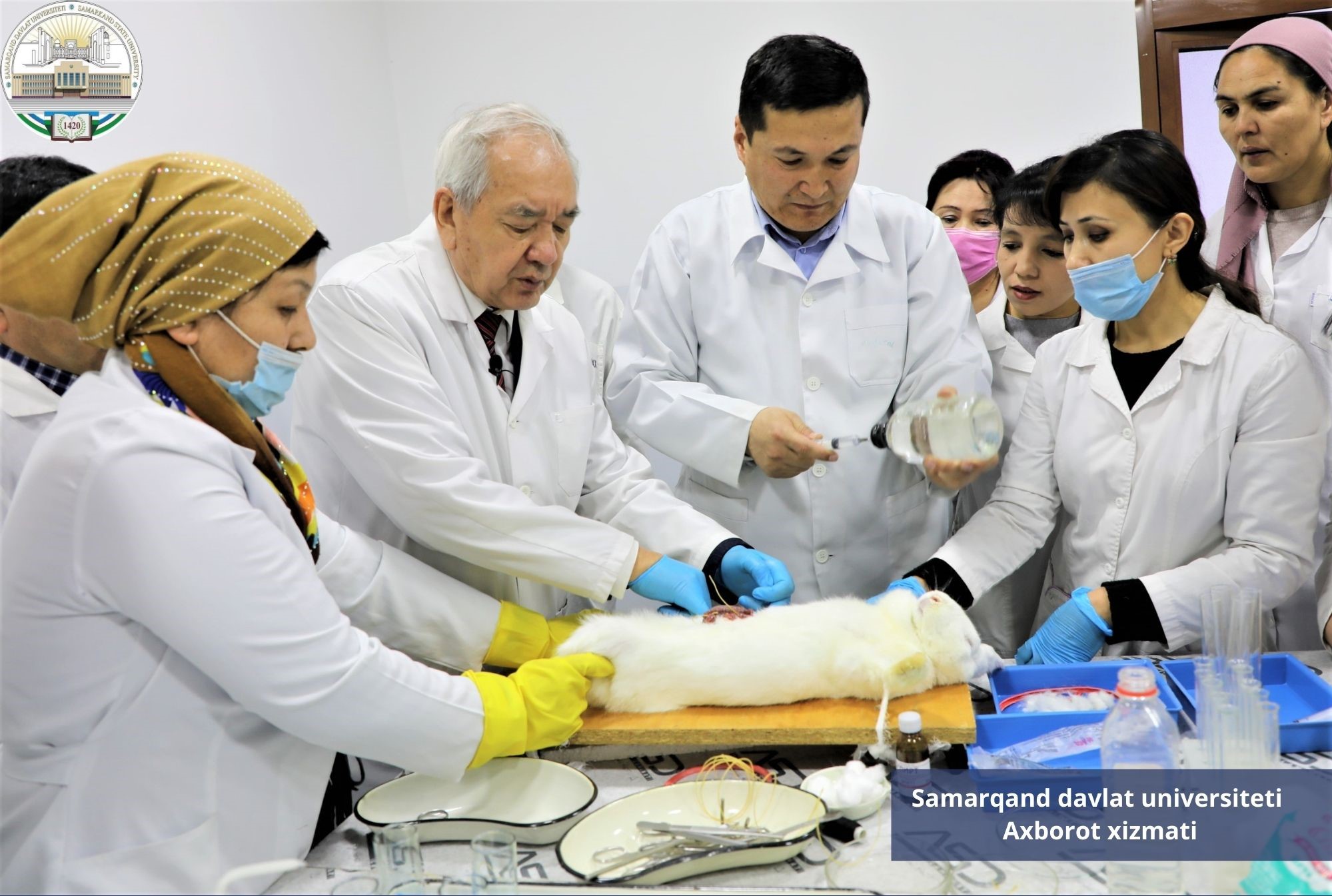 Самарқанд давлат университети биология факультетида Бакриддин Зарипов ҳикол зотли қуённинг ингичка ичагида глюкозанинг сўрилиши тажрибасини амалга оширди. Мазкур машғулотдан мақсад ошқозон-ичакларда моддалар сўрилиши жараёнларини аниқлашдан иборат.