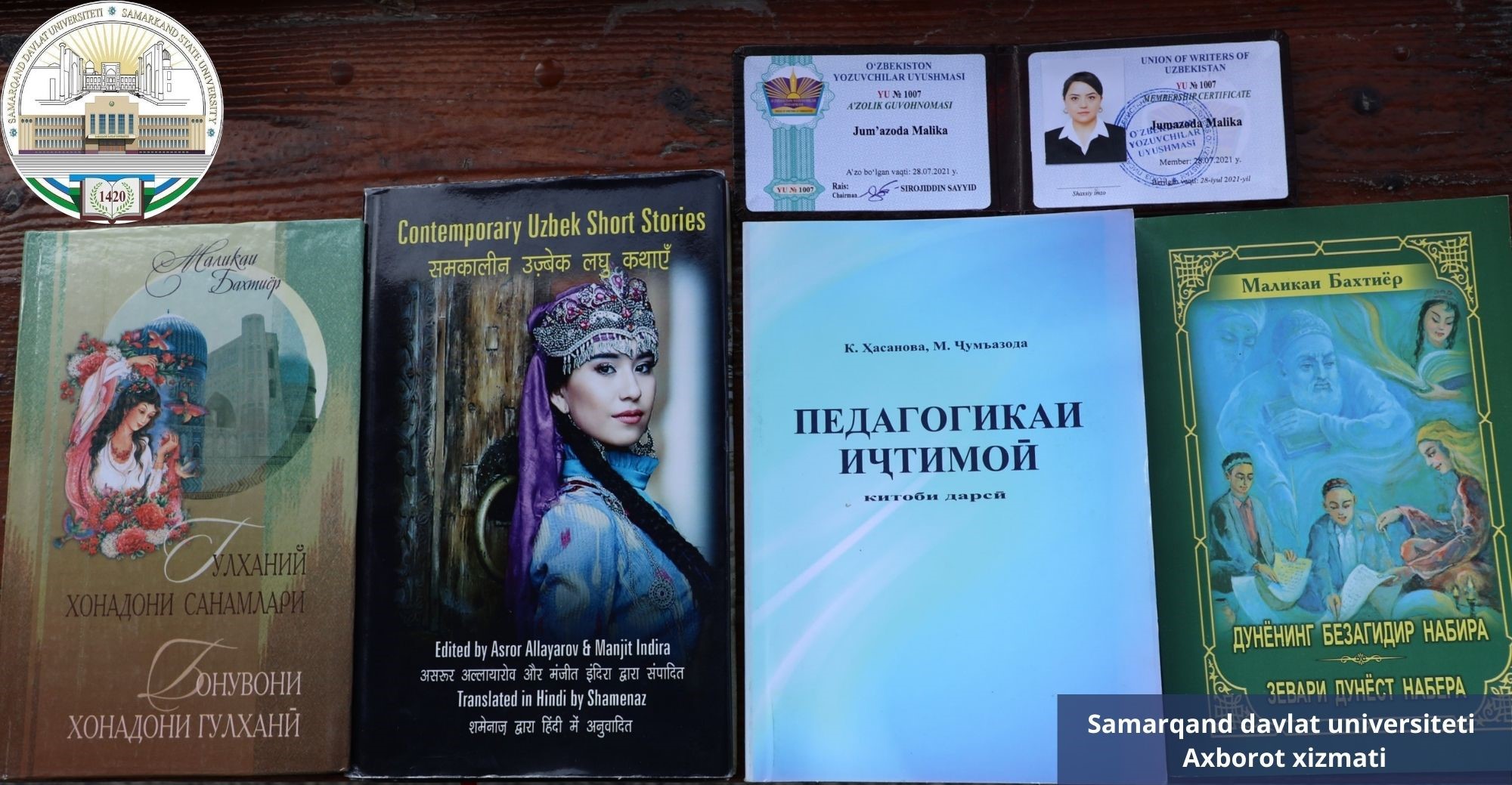 Шунингдек, ижодкор факультетлараро педагогика кафедраси мудири, профессор Кибриё Ҳасанова ҳаммуалифлигида тожик тилида таълим олувчи талабалар учун “Ижтимоий педагогика” номли дарслик ҳам чоп эттирган. Бундан ташқари, ўтган йили Ҳиндистонда чоп этилган “Замонавий ўзбек қиссалари” антологиясида ҳам бир нечта ижод намуналари ҳинд ва инглиз тилларида босилиб чиққан.