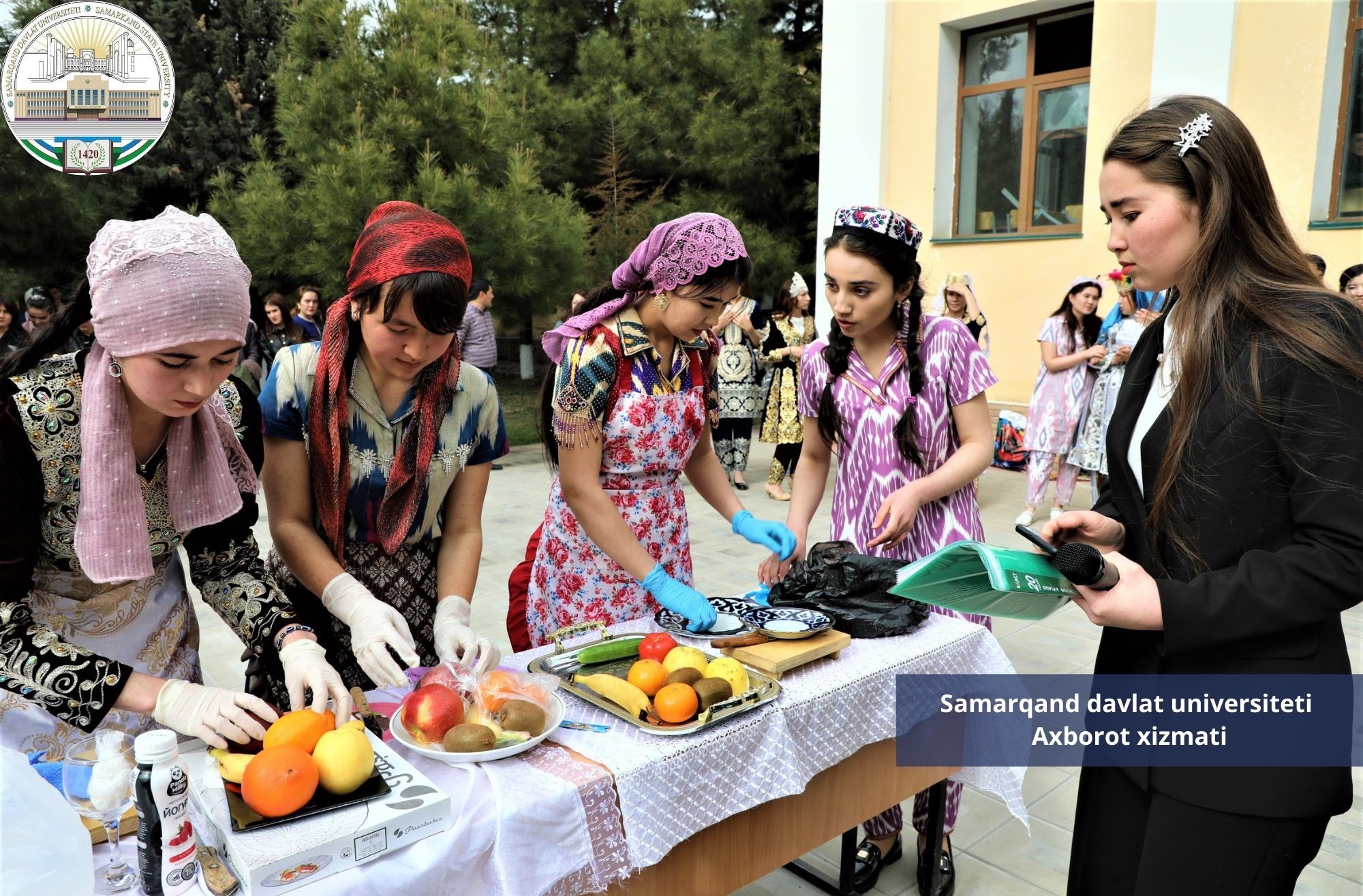 - Баҳор бу фасллар келинчаги. Юртимиз бўйлаб байрам кайфияти ҳукумронлик қилмоқда. Шу билан бирга Самарқанд давлат университетида ҳам байрамни кўтаринки руҳда кутиб олишмоқда, - дейди психология ва ижтимоий муносабатлар факультети талабаси Хумора Бердимуродова. - Бугунги танловда биз талабалар бир-биримиз билан рақиб сифатида эмас, балки опа-сингил сифатида иштирок этяпмиз. Танлов шартлари бўлажак келин ва хонадон бекалари учун мос тарзда белгилаб олингани таҳсинга сазовор.