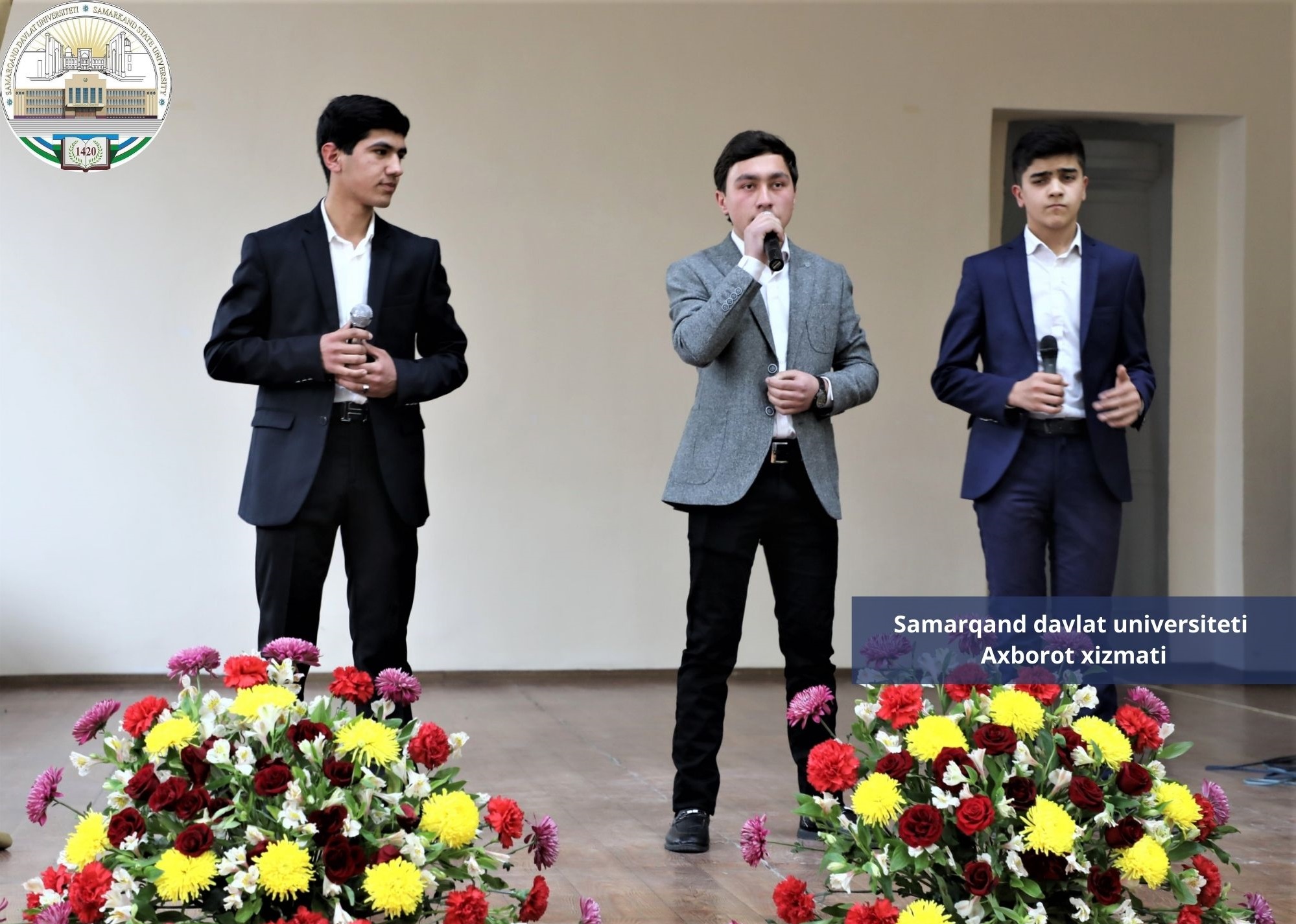 СамДУ Спорт фаолияти ва санъат факультети жамоаси томонидан ижро этилган куй ва қўшиқлар иштирокчиларни шод этиб, барчага кайфият улашди.