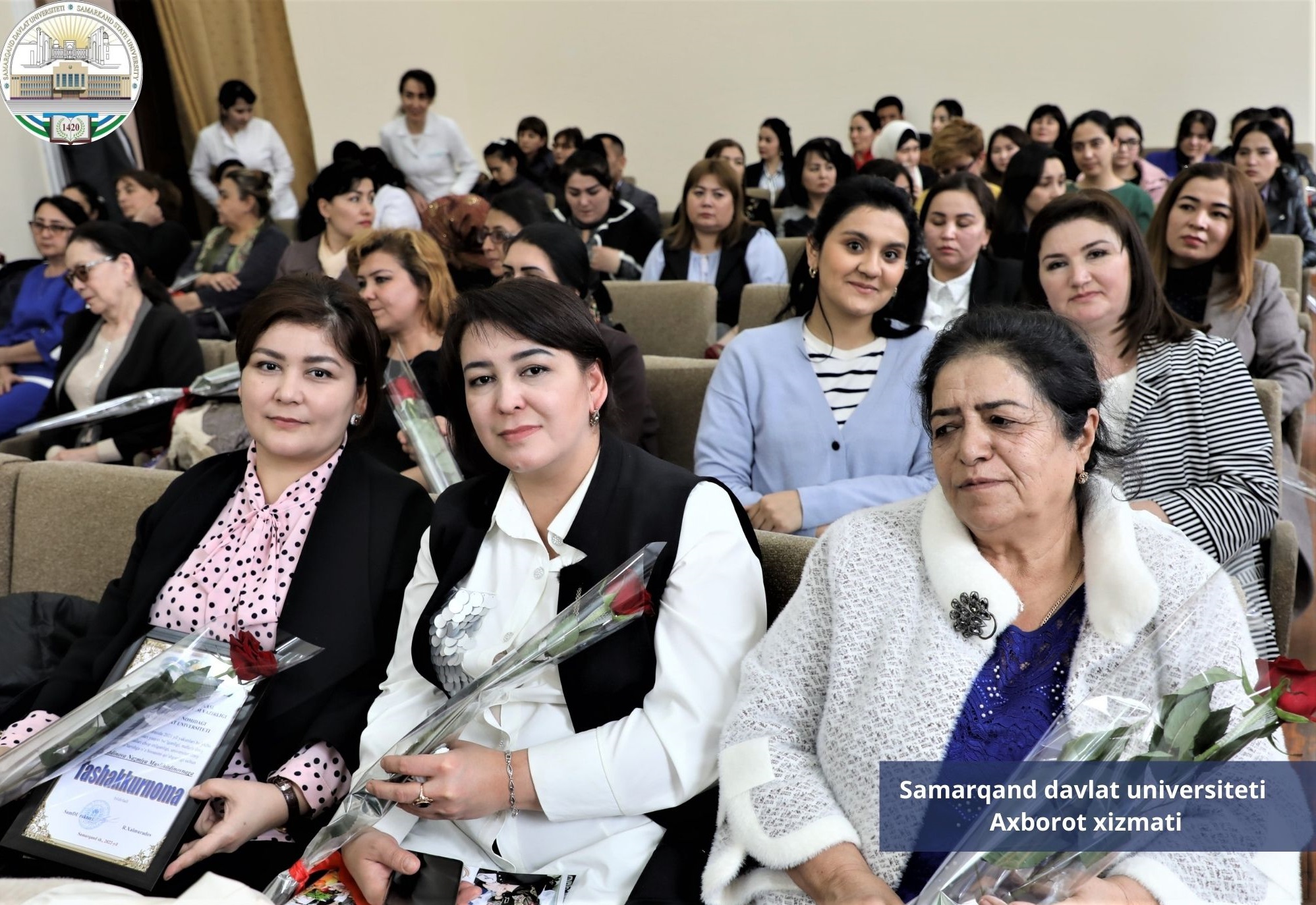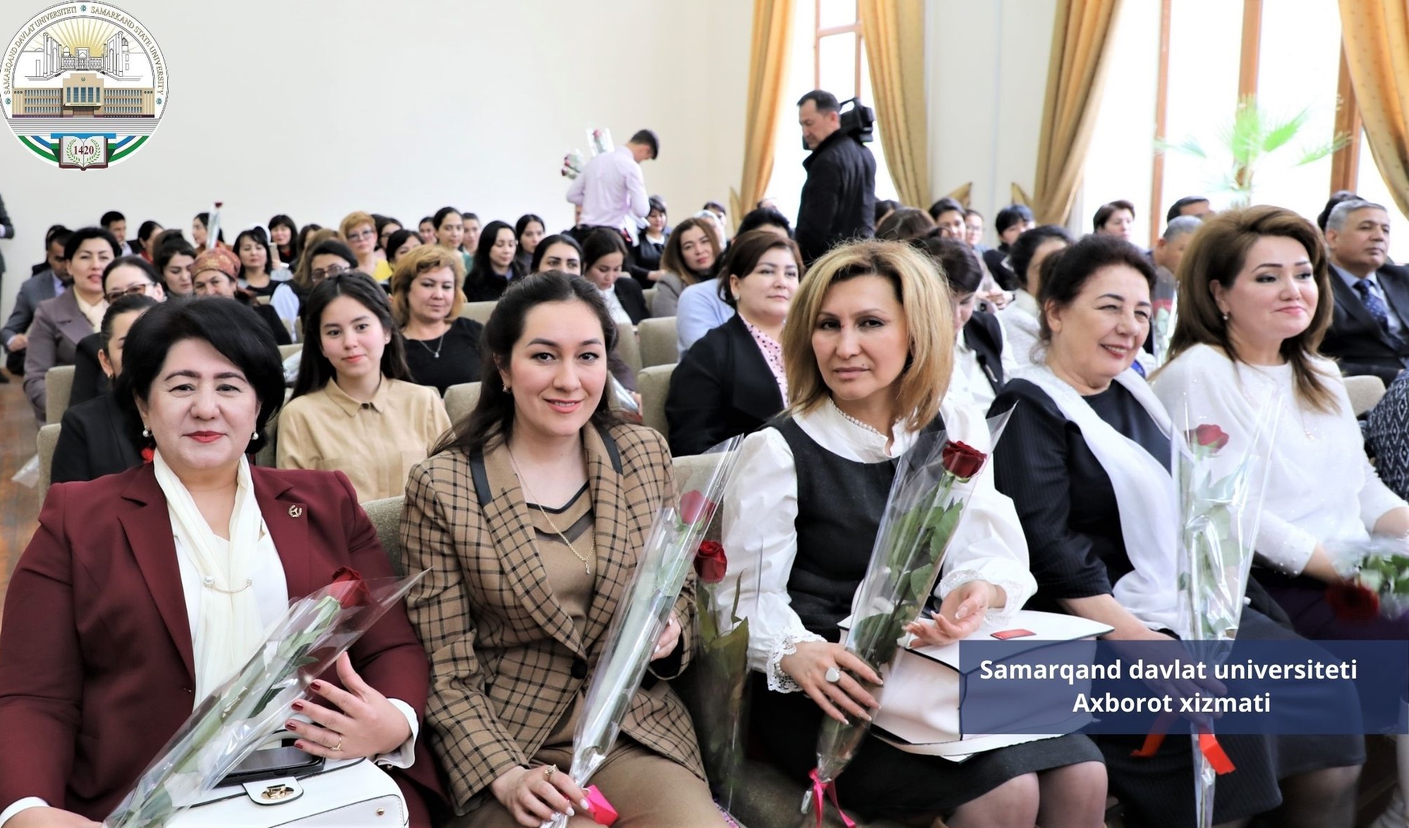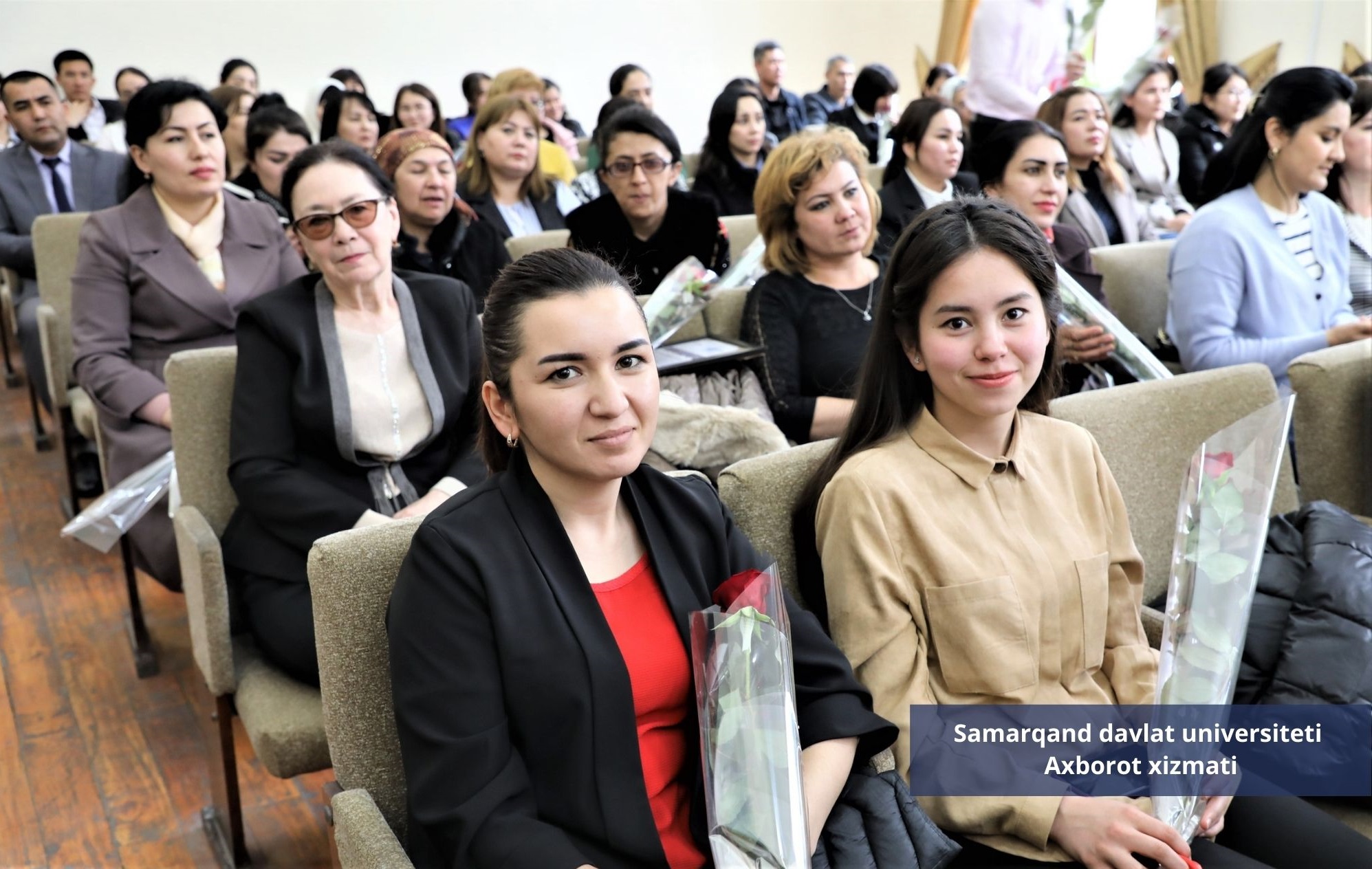 Шароф Рашидов номидаги Самарқанд давлат университетида 8 март Халқаро хотин-қизлар кунига бағишлаб ижодий кеча бўлиб ўтди. Тадбирни Самарқанд давлат университети ректори, профессор Олий Мажлис Сенати аъзоси Рустам Холмуродов кириш сўз билан очиб, барча аёлларни бугунги қутлуғ кун билан муборакбод этди.