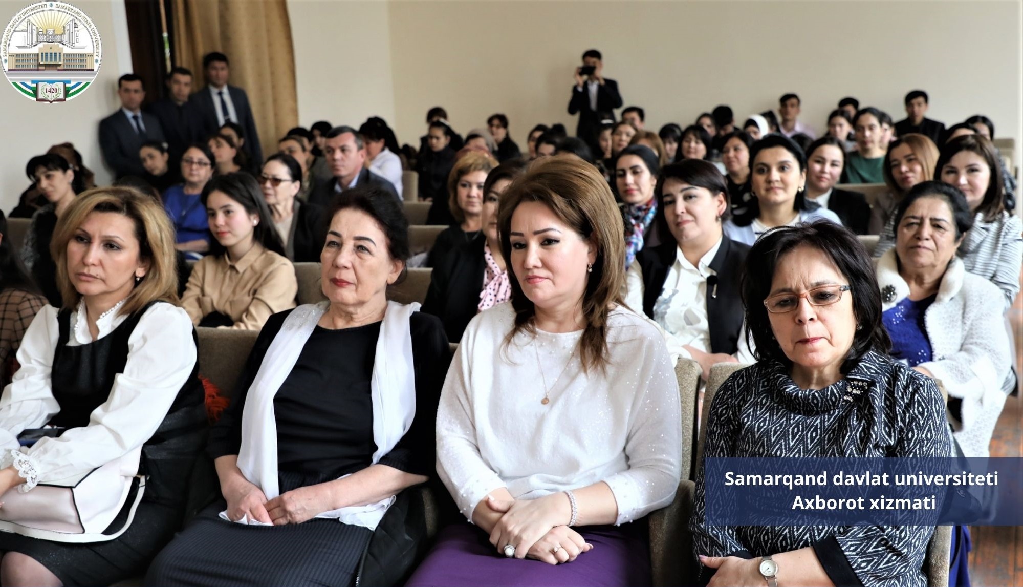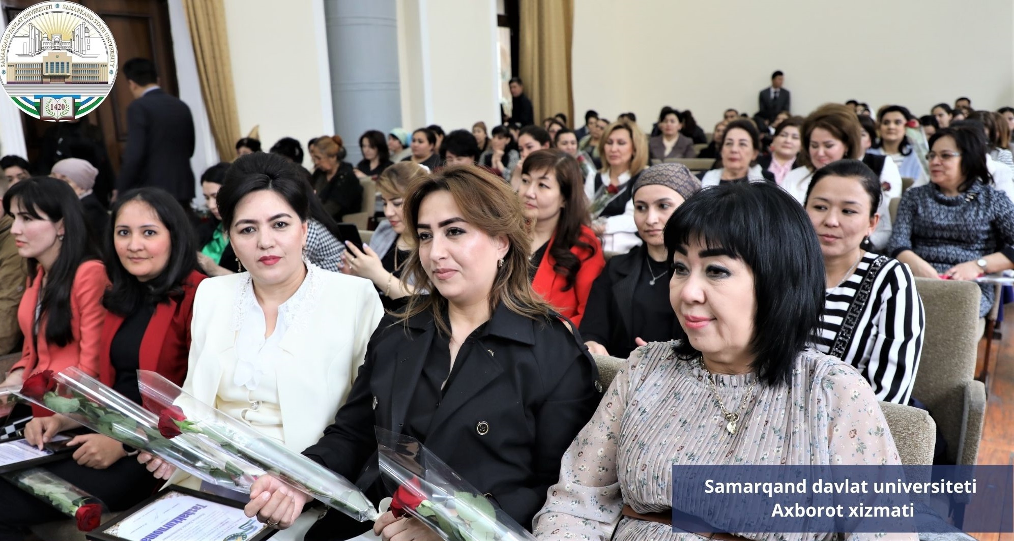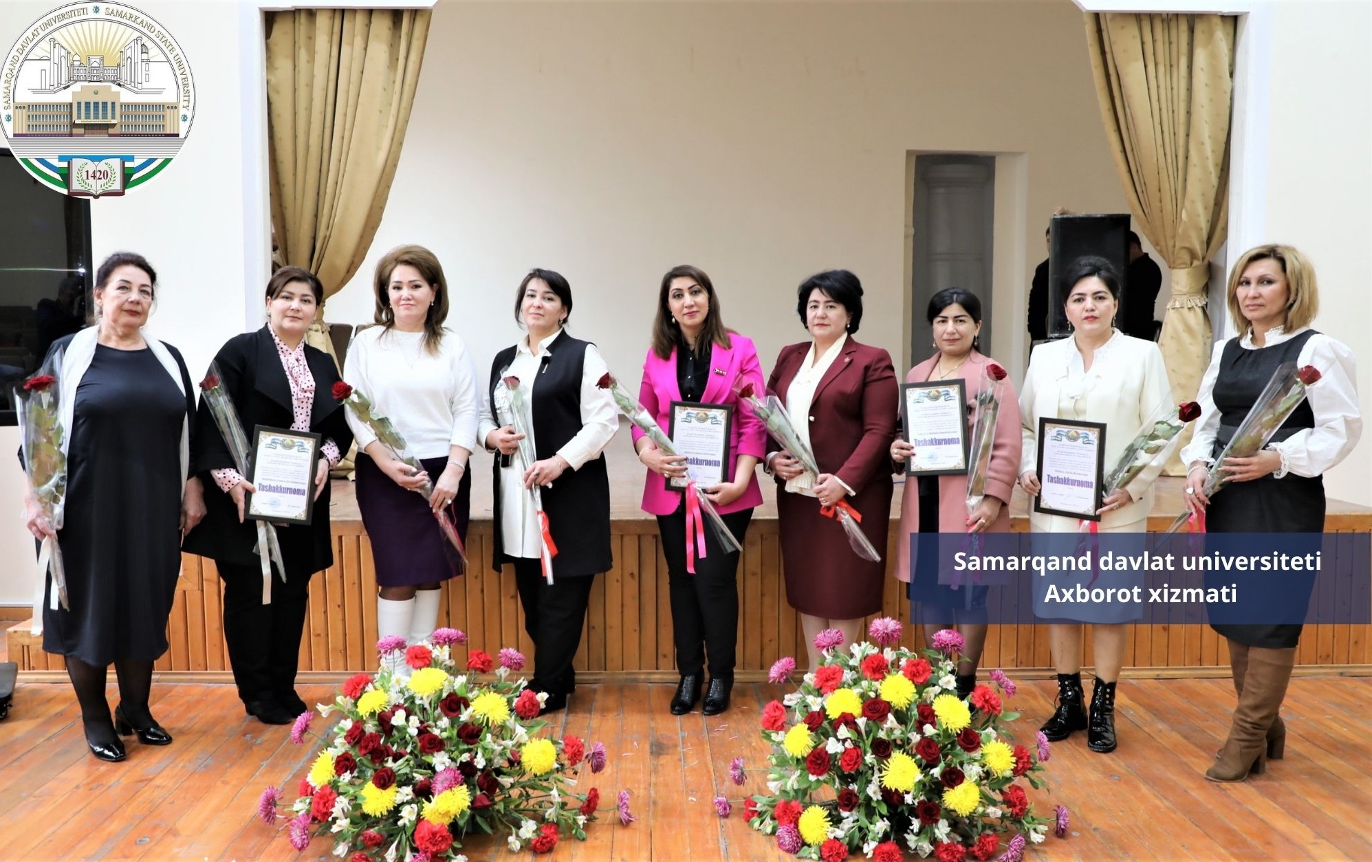 Шароф Рашидов номидаги Самарқанд давлат университетида 8 март Халқаро хотин-қизлар кунига бағишлаб ижодий кеча бўлиб ўтди. Тадбирни Самарқанд давлат университети ректори, профессор Олий Мажлис Сенати аъзоси Рустам Холмуродов кириш сўз билан очиб, барча аёлларни бугунги қутлуғ кун билан муборакбод этди.