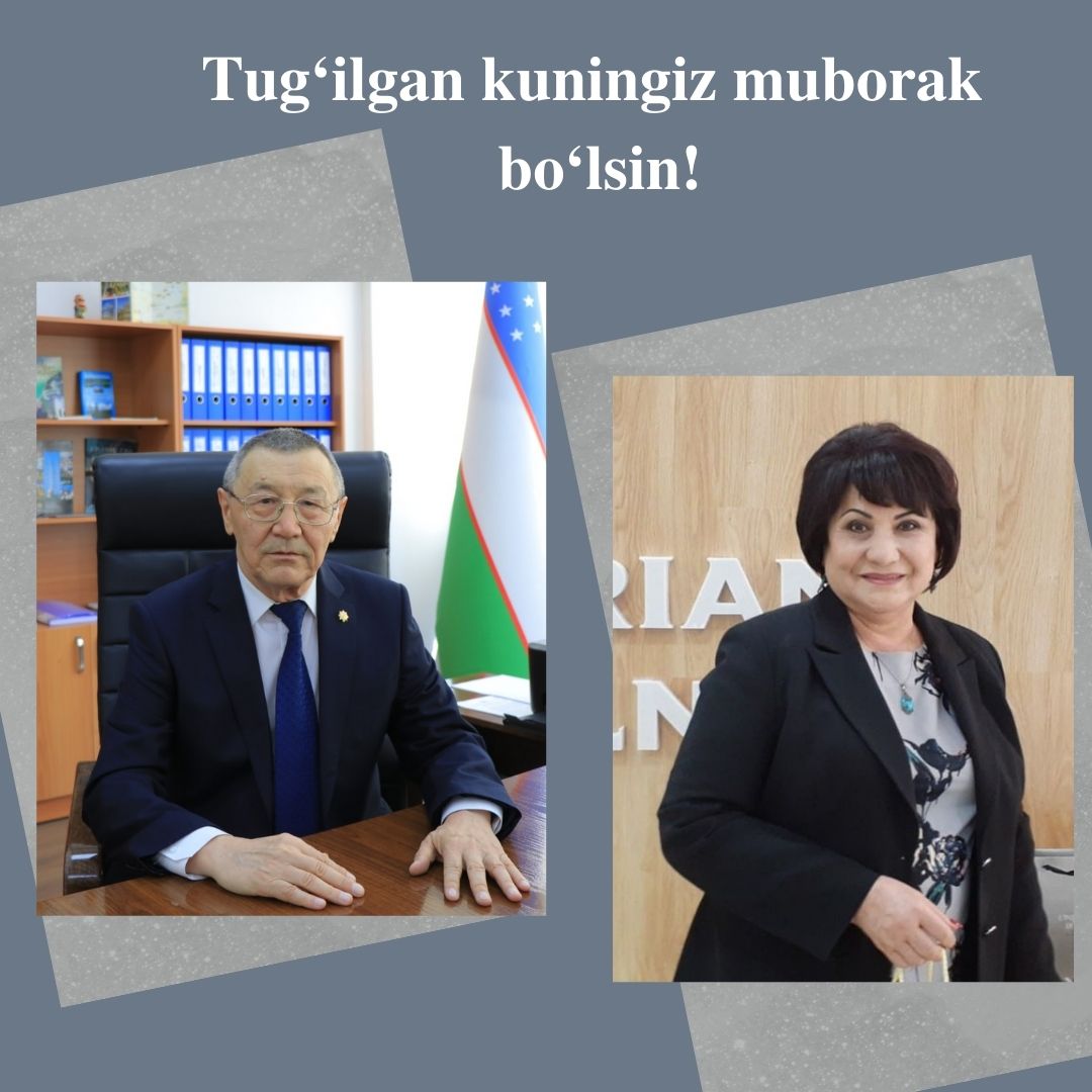 Бугунги кун муносабати билан университет жамоаси туғилган кун соҳибларини самимий муборакбод этиб, илмий ишларига мувафаққият, узоқ умр, сиҳат-саломатлик, тинчлик-хотиржамлик тилайди.