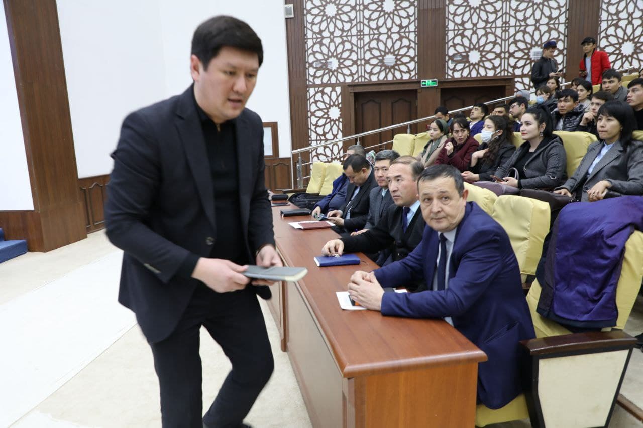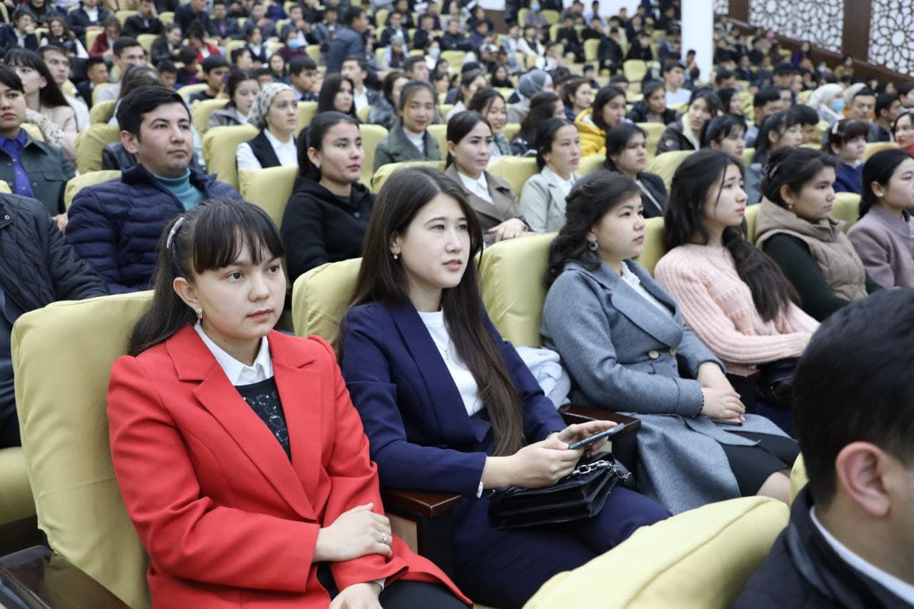 Самарқанд давлат университети ректори, профессор, Олий Мажлис Сенати аъзоси Рустам Холмуродовнинг талабалар билан учрашуви бошланиш арафасида.