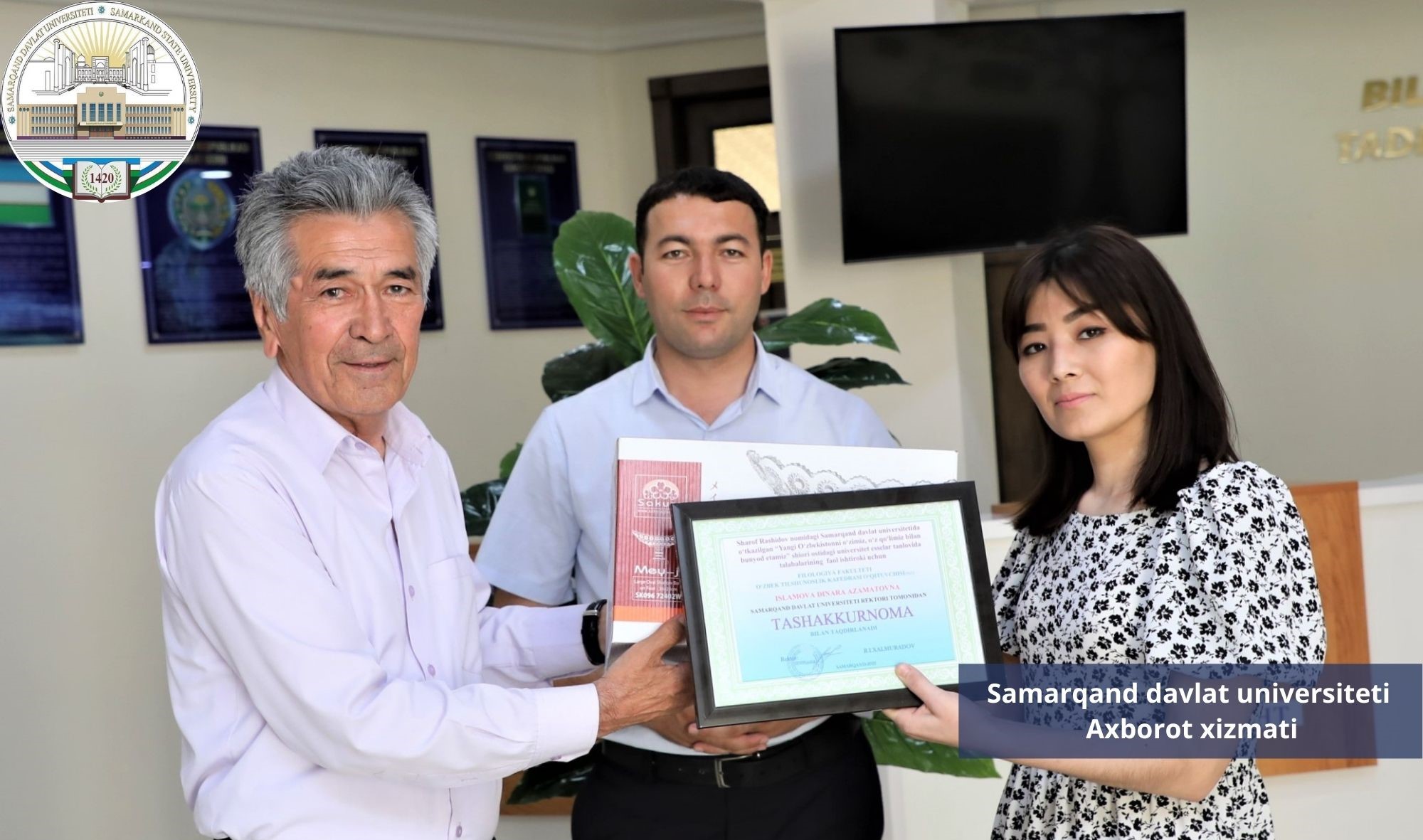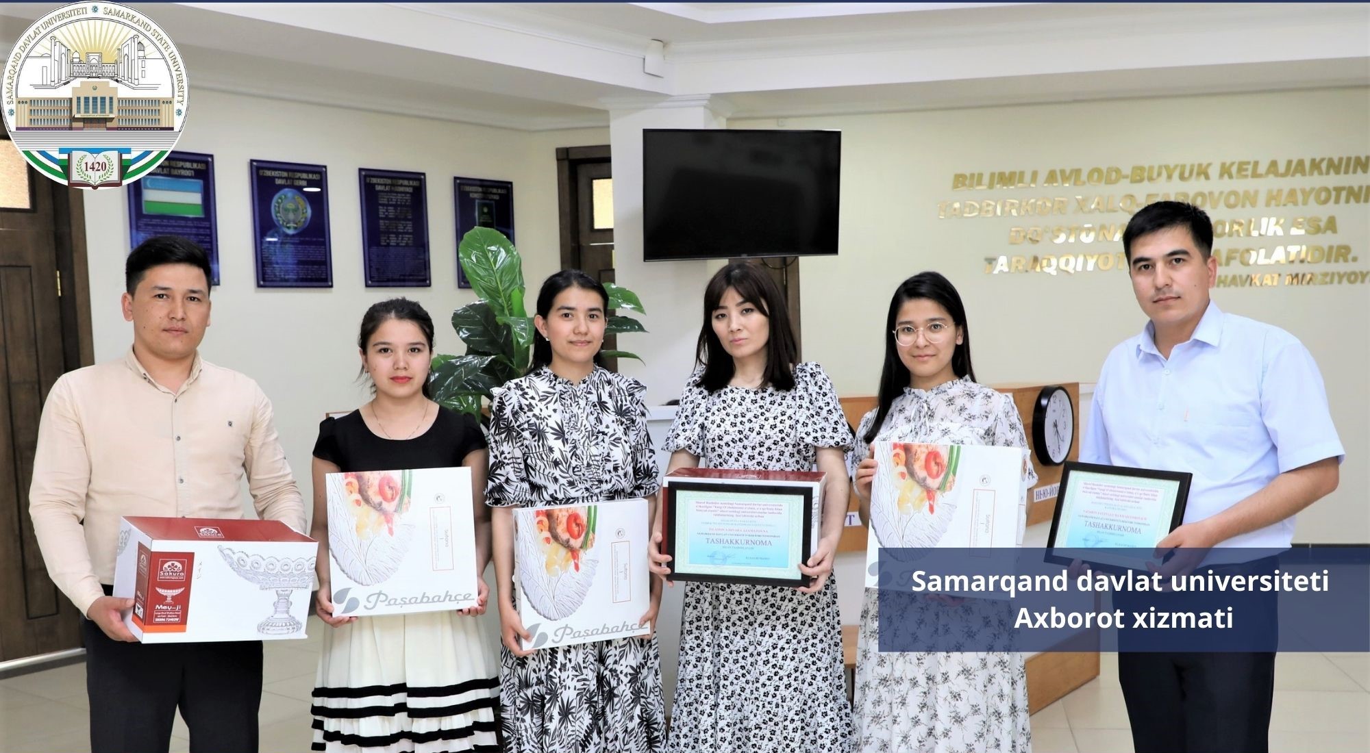 Ғолиблар ва уларнинг илмий раҳбарлари университет бошланғич касаба уюшма қўмитаси томонидан диплом ва эсдалик совғалари билан тақдирланди.