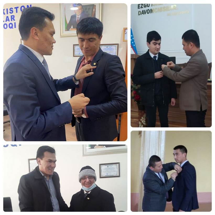 Jumladan, Samarqand davlat universiteti Tarix fakultetida boʻlib oʻtgan Yoshlar ittifoqi faollariga koʻkrak nishonlari topshirish marosimida fakultetning faol talabalari fakultet yoshlar yetakchisiga, shuningdek, yoshlar bilan ishlash boʼyicha dekan oʼrinbosariga o'z talab va takliflarini bildirib, ittifoq berayotgan imkoniyatlar haqida suhbat qurdilar. Yuqori kayfiyatda o'tkazilgan tadbir yakunida talabalarga ko'krak nishonlari topshirildi.