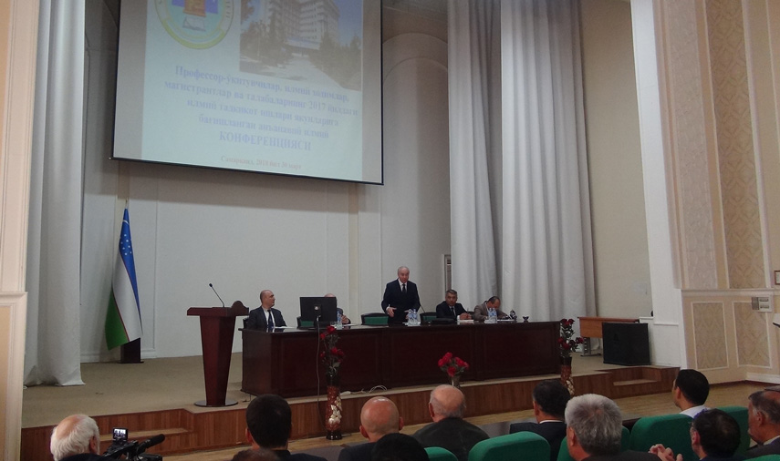 2018-yilning 30-mart kuni universitet professor-o‘qituvchilari, ilmiy tadqiqotchi, magistrant va talabalarining 2017-yilda olib borgan ilmiy-tadqiqot ishlari natijalarini muhokama etish, ilmiy izlanishlar samaradorligini oshirish, hozirgi zamon talablariga javob beradigan yuqori malakali ilmiy-pedagogik kadrlar tayyorlash, professor-o‘qituvchilar va mutaxassis-olimlarning ilmiy-tadqiqot faoliyati natijasida yaratilgan ilmiy-texnologik ishlanmalarning tegishli sohalarga tatbiqini hamda fan, ta’lim va ishlab chiqarish integrasiyasi asosida olib borilayotgan ilmiy tadqiqot ishlarini tahlil qilish, qo‘llab-quvvatlash orqali ilm-fanni rivojlantirishda olimlarimiz va yetishib kelayotgan yosh mutaxassislarning rolini oshirish hamda 2018-yilda ilmiy-tadqiqotchilik sohasida bajariladigan vazifalarni belgilab olish maqsadida anjuman o‘z ishini boshladi. Anjumanning yalpi majlisi universitet rektori prof. R.I.Xalmuradov ochib berdi, shundan so‘ng Kadrlar menejmenti kafedrasi mudiri i.f.d.dos.B.Safarov, Gidrometeorologiya kafedrasi dosenti g.f.d.A.Raxmatullayev hamda Tarixshunoslik va manbashunoslik kafedrasi assistenti M.Buzrukovlar so‘zga chiqishdi.