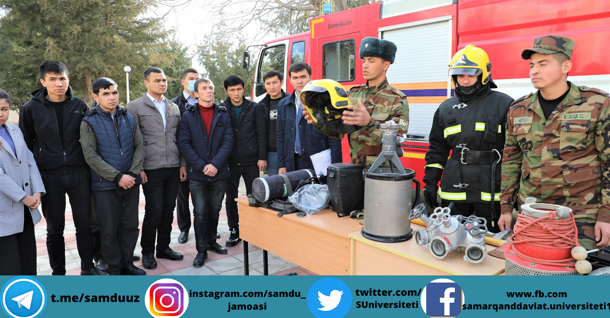 Samarqand davlat universiteti raqamli texnologiyalar fakultetida yong’in bilan bog’liq bo’lgan favqulodda vaziyatlarni oldini olish bo’yicha davra suhbati bo’lib o’tdi. Seminarda Samarqand viloyati favqulodda vaziyatlar boshqarmasi, SamDU Fuqorolar himoyasi va mehnat muhofazasi bo‘limi mutaxassislari ishtirok etdi.