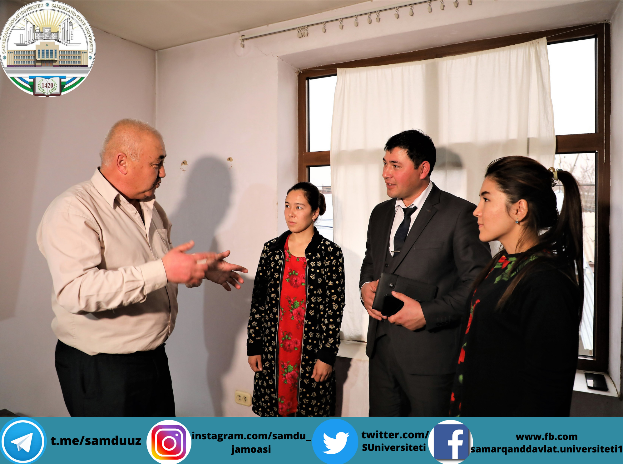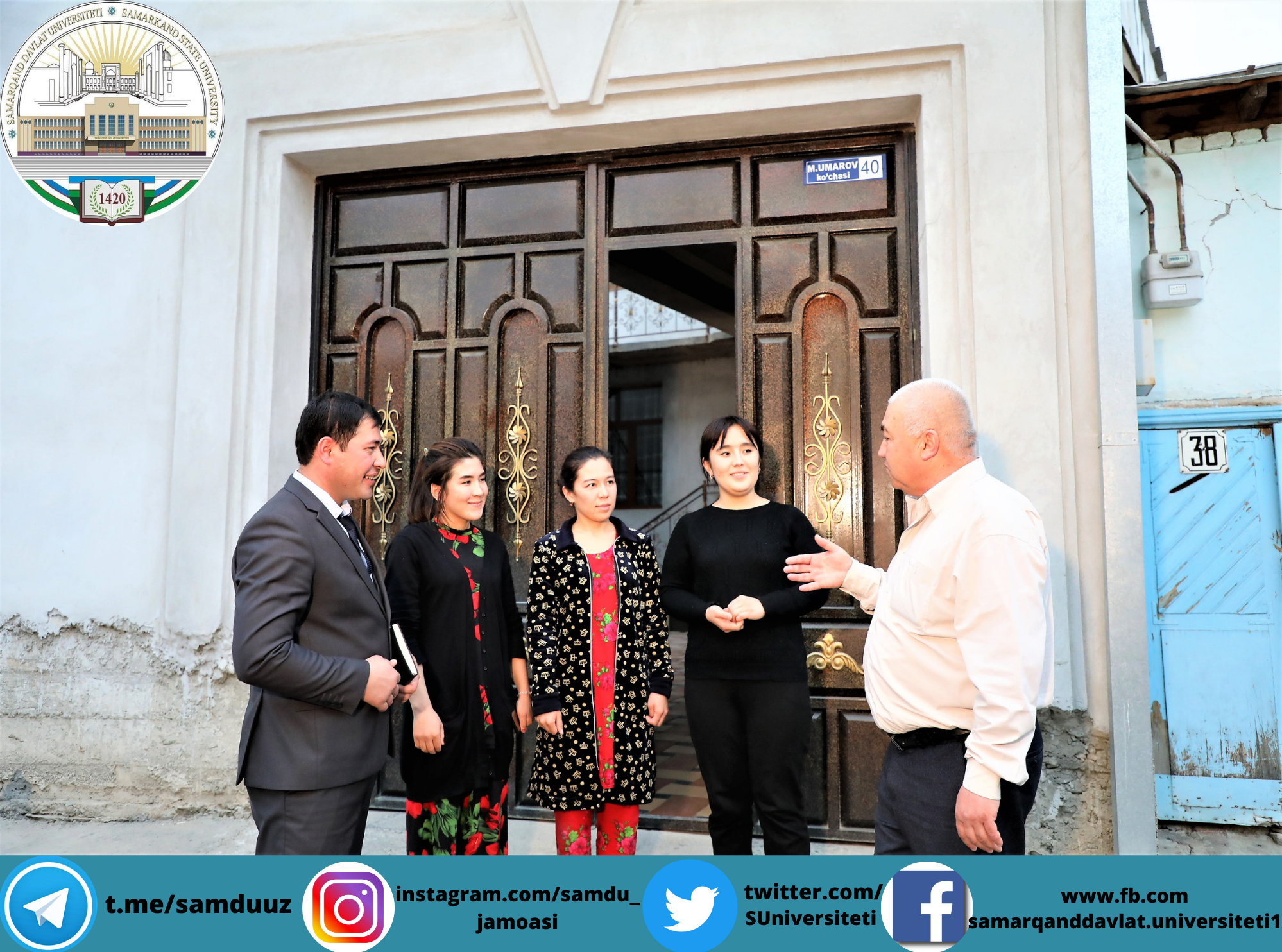 Samarqand davlat universiteti talabalarni turar joy bilan ta’minlash ishlarini muvofiqlashtiruvchi bo‘limi bosh mutaxassisi Musurmon Xotamov, geografiya va ekologiya fakulteti tyutori Feruddin Turexanovlar ijarada yashovchi talabalarning yashash sharoitlarini o‘rgandi.
