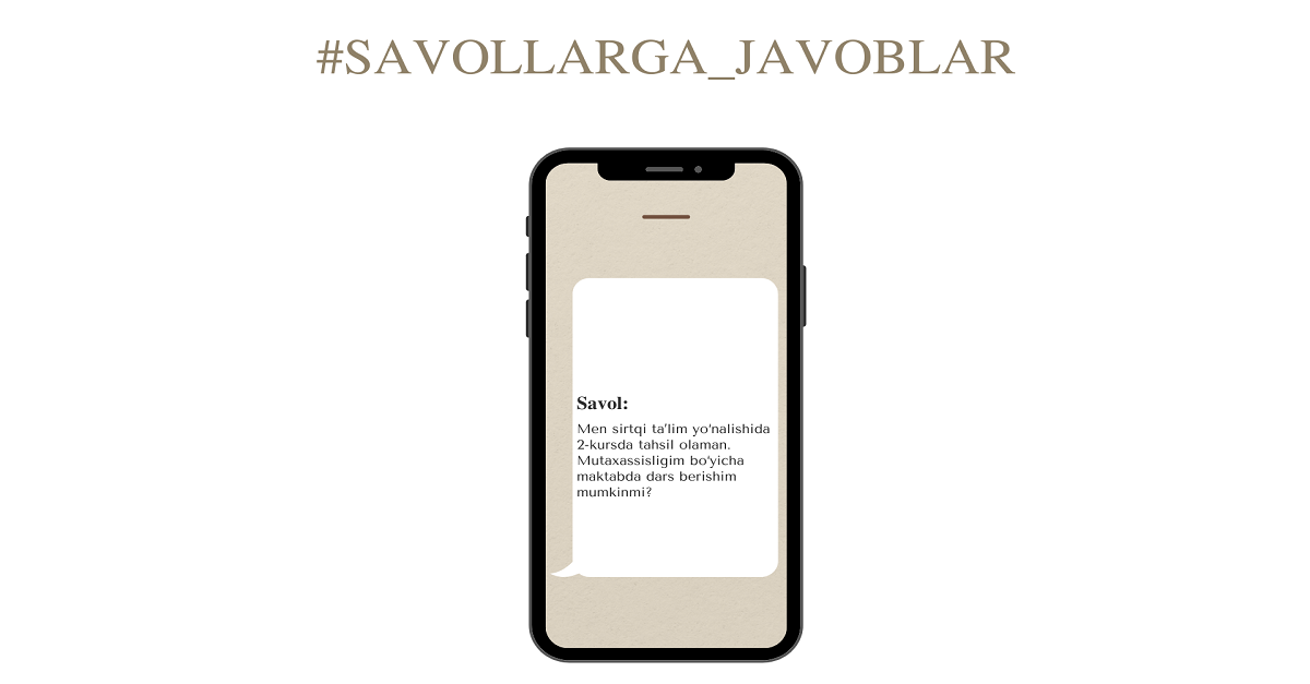 Men sirtqi ta’lim yo‘nalishida 2-kursda tahsil olaman. Mutaxassisligim bo‘yicha maktabda dars berishim mumkinmi?