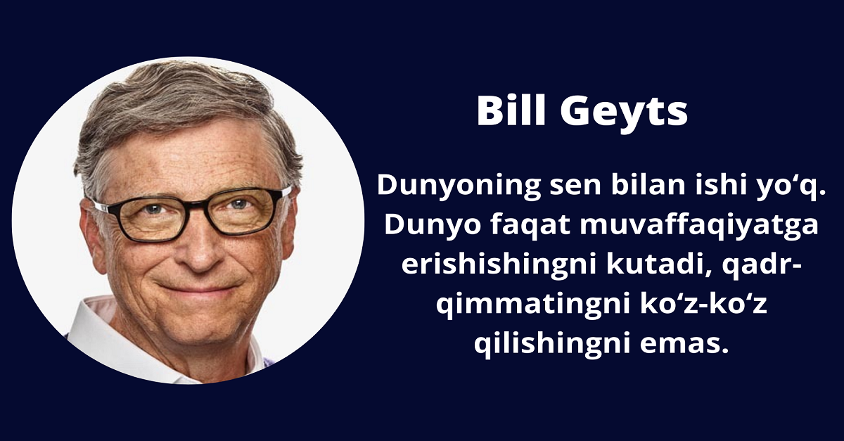 Dunyoning sen bilan ishi yo‘q. Dunyo faqat muvaffaqiyatga erishishingni kutadi, qadr-qimmatingni ko‘z-ko‘z qilishingni emas.