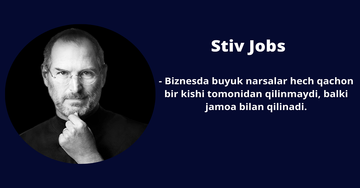 - Biznesda buyuk narsalar hech qachon bir kishi tomonidan qilinmaydi, balki jamoa bilan qilinadi.