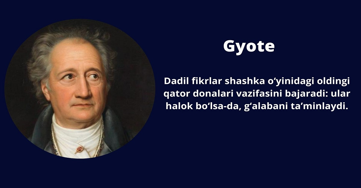 Dadil fikrlar shashka o‘yinidagi oldingi qator donalari vazifasini bajaradi: ular halok bo‘lsa-da, g‘alabani ta’minlaydi.