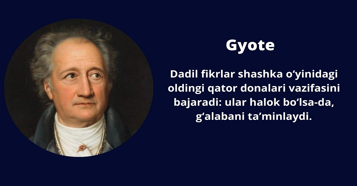 Dadil fikrlar shashka o‘yinidagi oldingi qator donalari vazifasini bajaradi: ular halok bo‘lsa-da, g‘alabani ta’minlaydi.