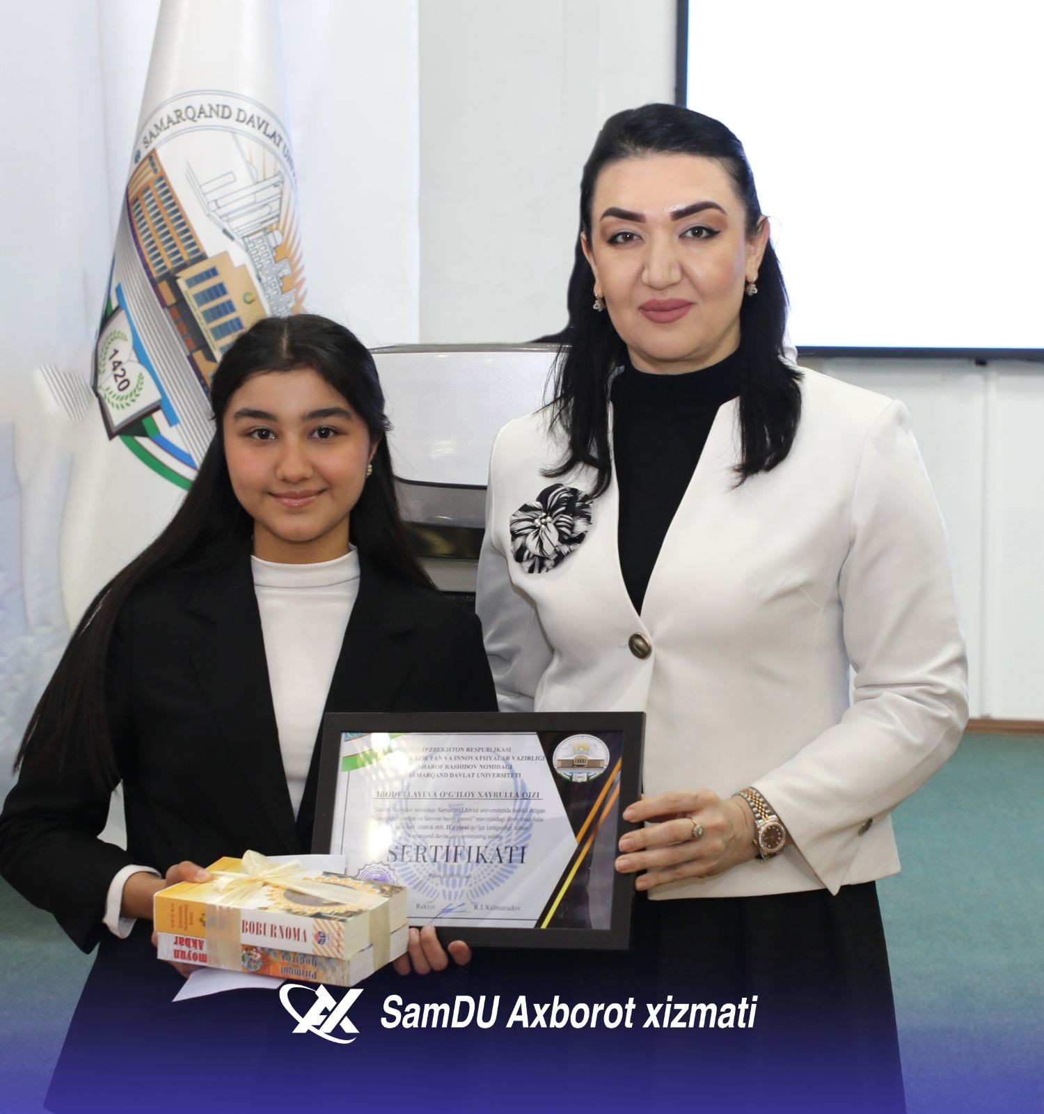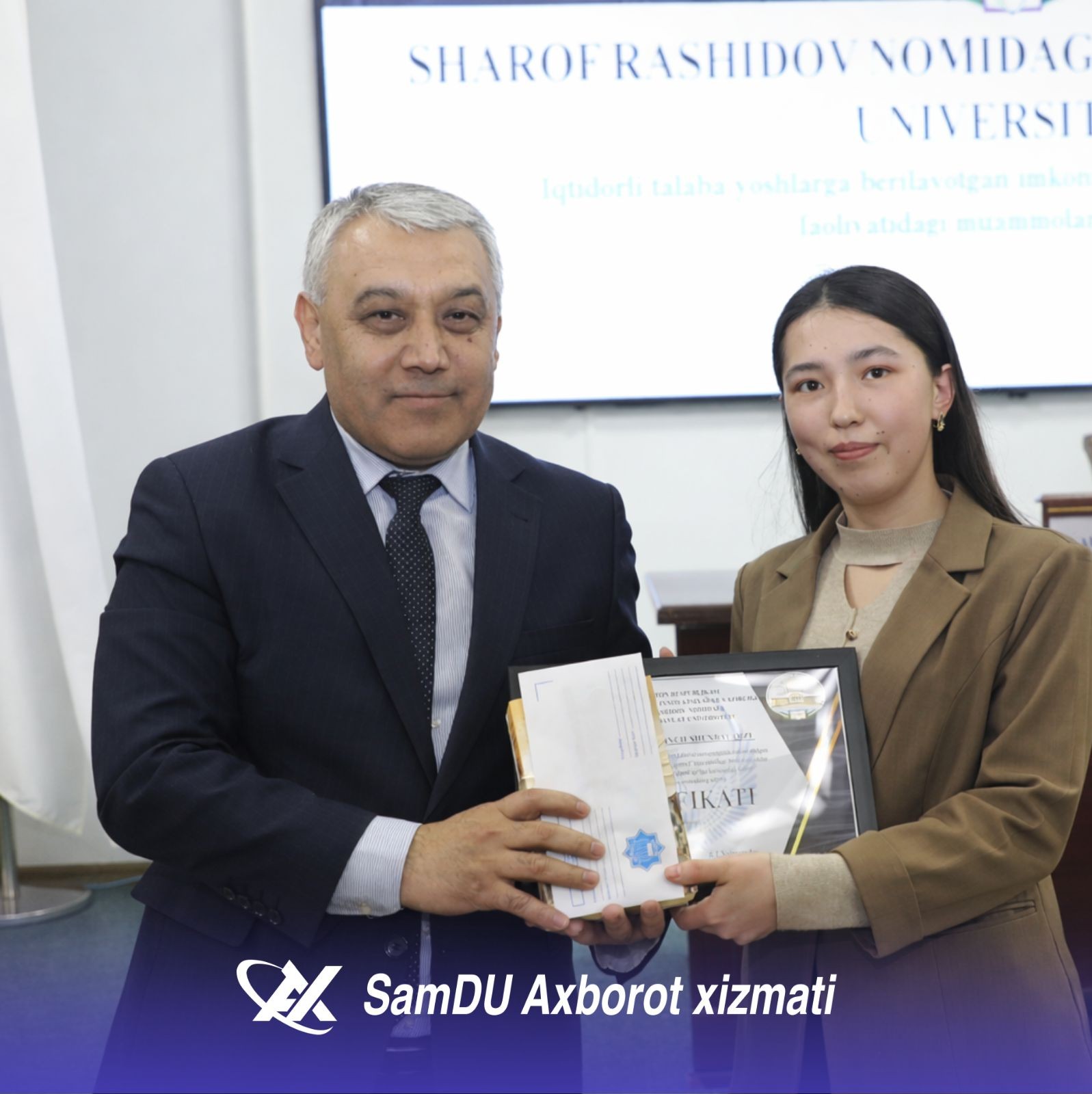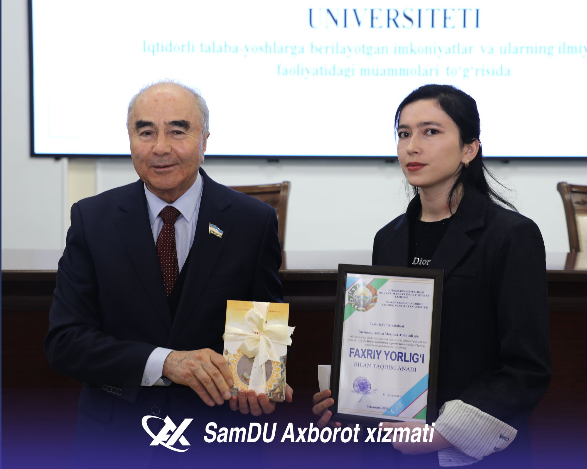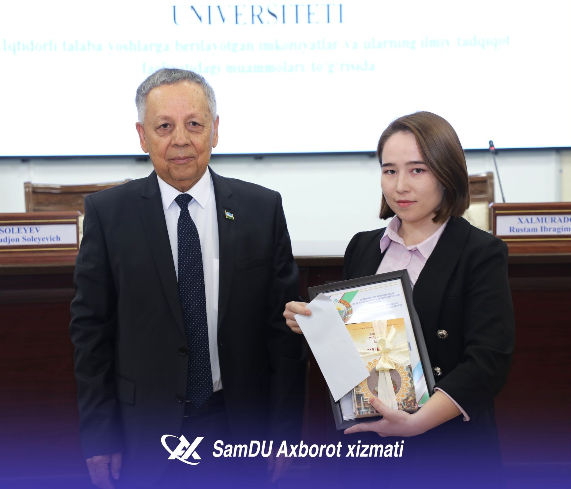 - Talabalarning muakkamal o‘qishi, ilmiy izlanishlar olib borishi uchun barcha sharoitlar yaratilgan, - deydi SamDU rektori Rustam Xolmurodov. - Sizlar universitetimizning yetakchi talabalarisiz. Bugungi natijalaringiz sizlar uchun boshlanishi bo‘lsin. Hamma sizga havas bilan qarasin. O‘z ustingizda yana-da ko‘proq ishlashingiz zarur. Xorijiy tillarni mukammal o‘rganish va xalqaro maydonda faol bo‘lishingiz kerak. Shuni unutmang, zamonaviy bilim va ko‘nikmalar bilan qurollangan yoshlar mamlakat taraqqiyotining asosiy tayanchi. Sizlarga ulkan omad va zafarlar tilayman.
