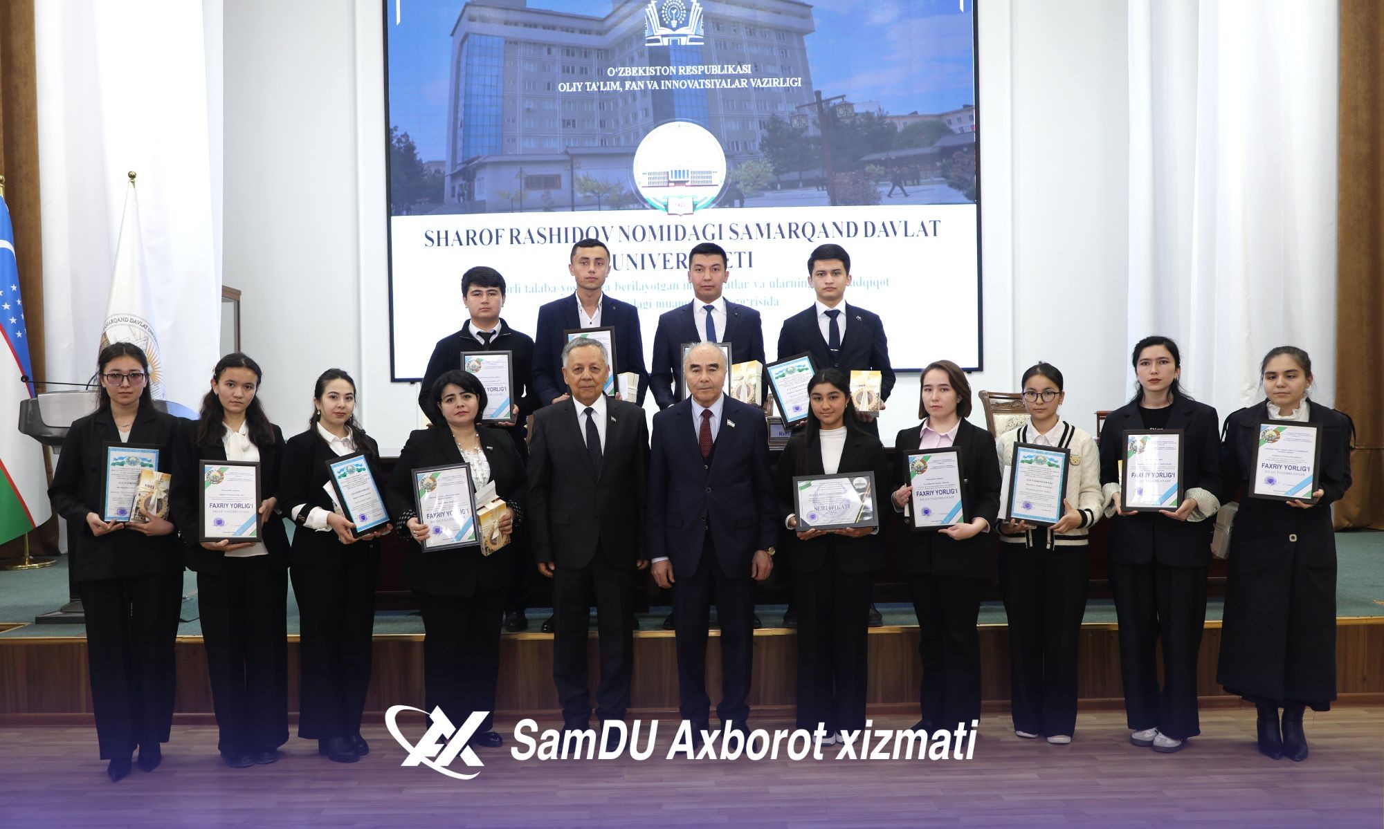 2025-o‘quv yilida Prezident hamda davlat stipendiyalariga sazovor bo‘lgan talabalar, turli respublika va xalqaro tanlovlar g‘oliblari esdalik sovg‘alar va pul mukofotlari bilan taqdirlandi.