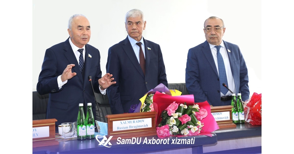 Samarqand davlat universiteti rektori, O‘zbekiston Respublikasi fan arbobi, Oliy Majlis Senati aʼzosi Rustam Xolmurodov anjumanni olib bordi.