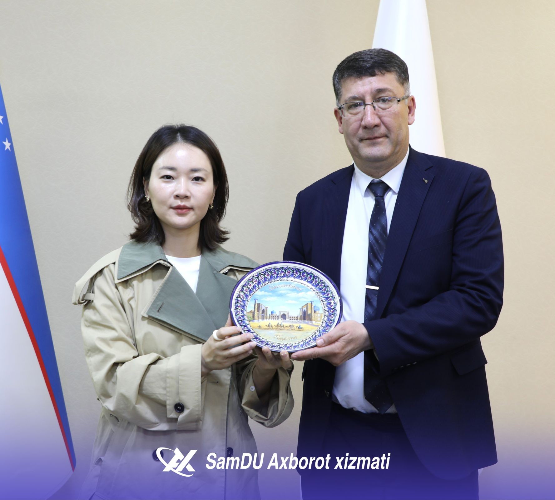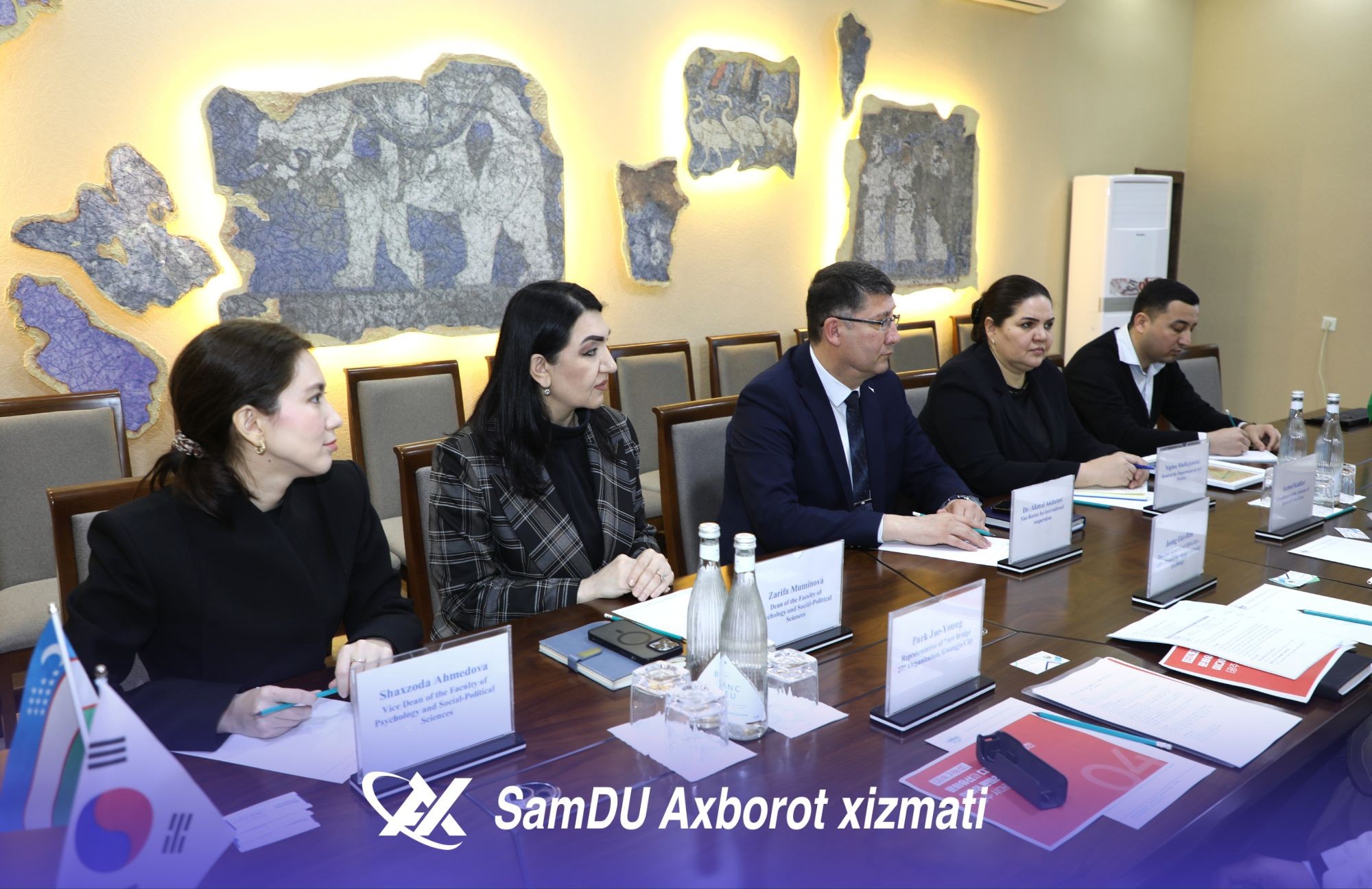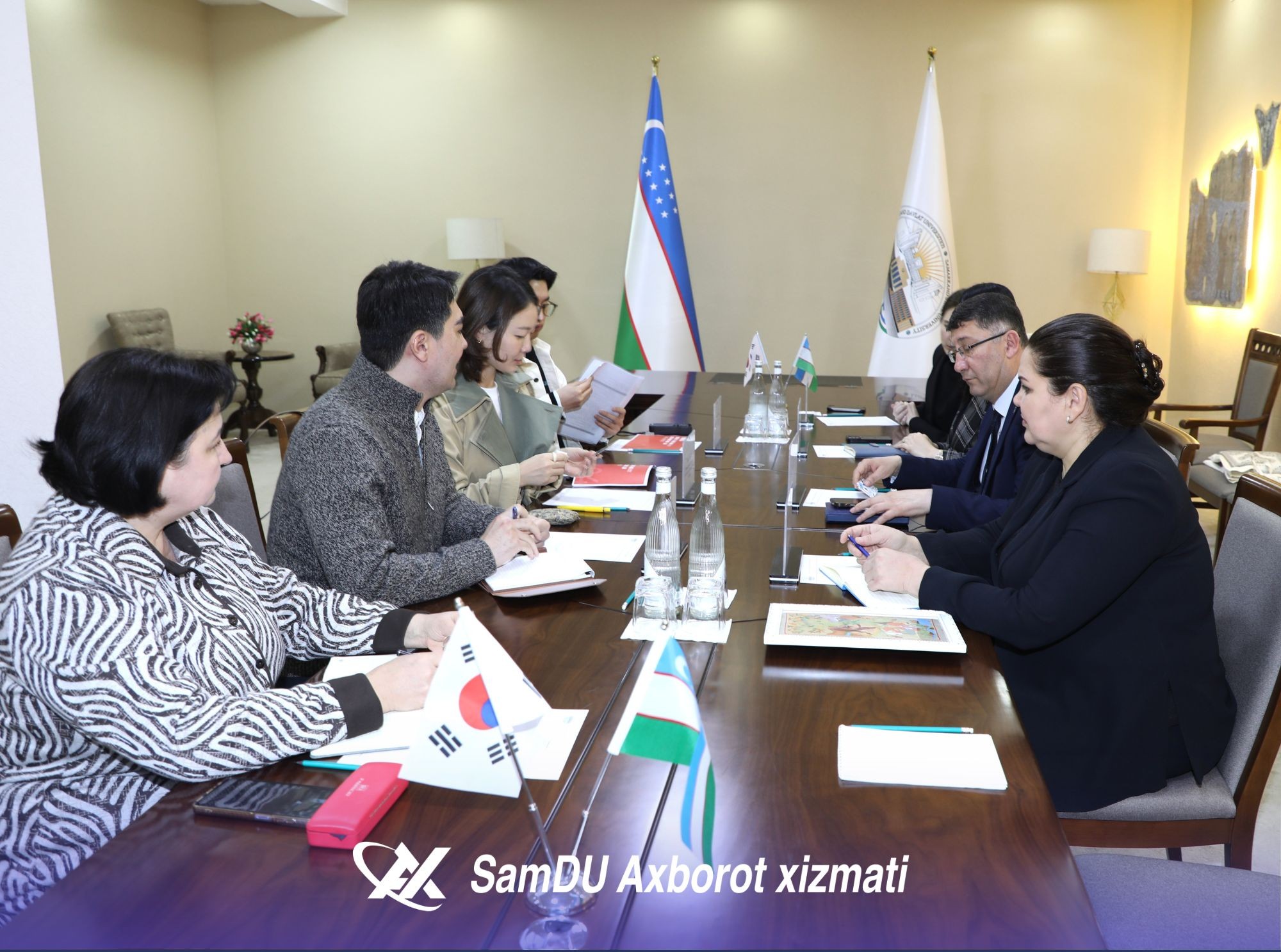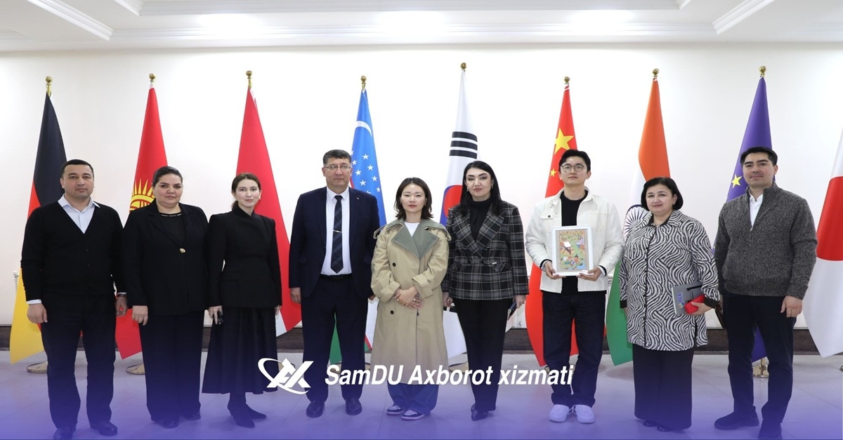 Sharof Rashidov nomidagi Samarqand davlat universitetiga Koreya Respublikasining Kvandju shahrida joylashgan “Art Bridge 27” tashkiloti bosh direktori Jeong Eui-Rim boshchiligidagi delegatsiya tashrif buyurdi. Martabali mehmonlarni universitetning xalqaro hamkorlik bo‘yicha prorektori Akmal Axadov mas’ullar hamrohligida kutib oldi. Delegatsiya a’zolari bilan uchrashuvda universitetning psixologiya va ijtimoiy-siyosiy fanlar fakulteti dekani Zarifa Mo‘minova, dekan o‘rinbosari Shahzoda Ahmedova hamda universitetdagi koreys madaniyati markazi faollari ishtirok etdi.