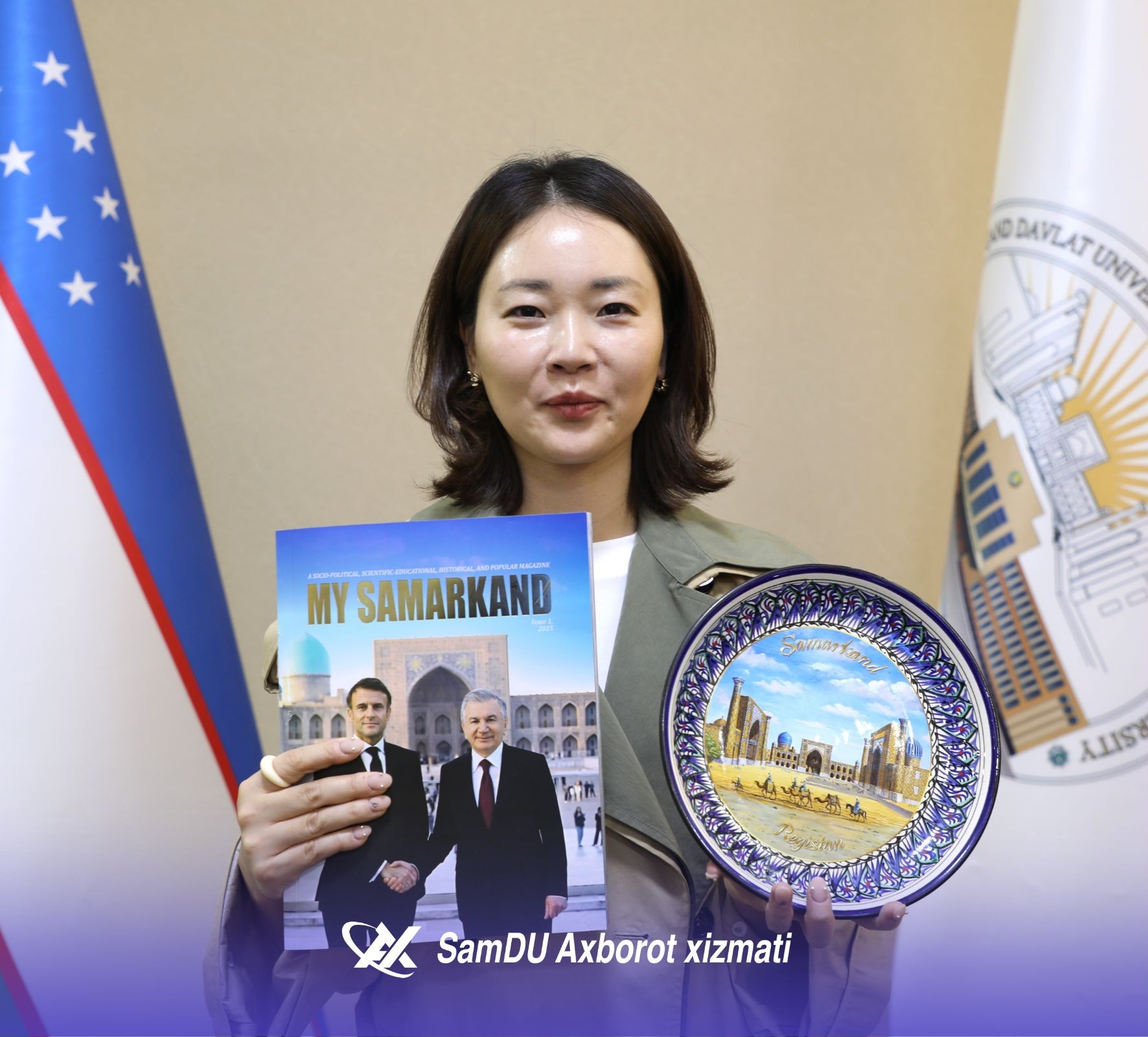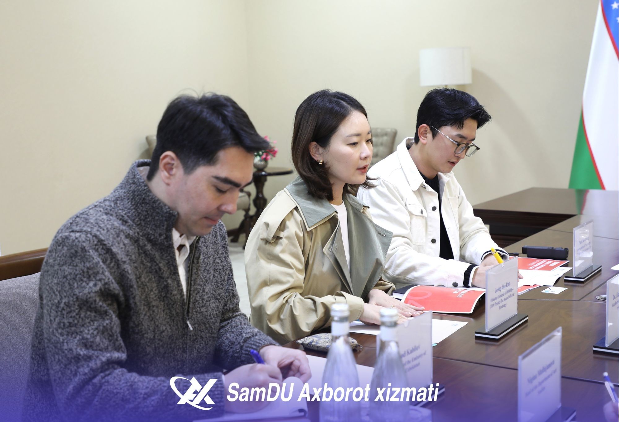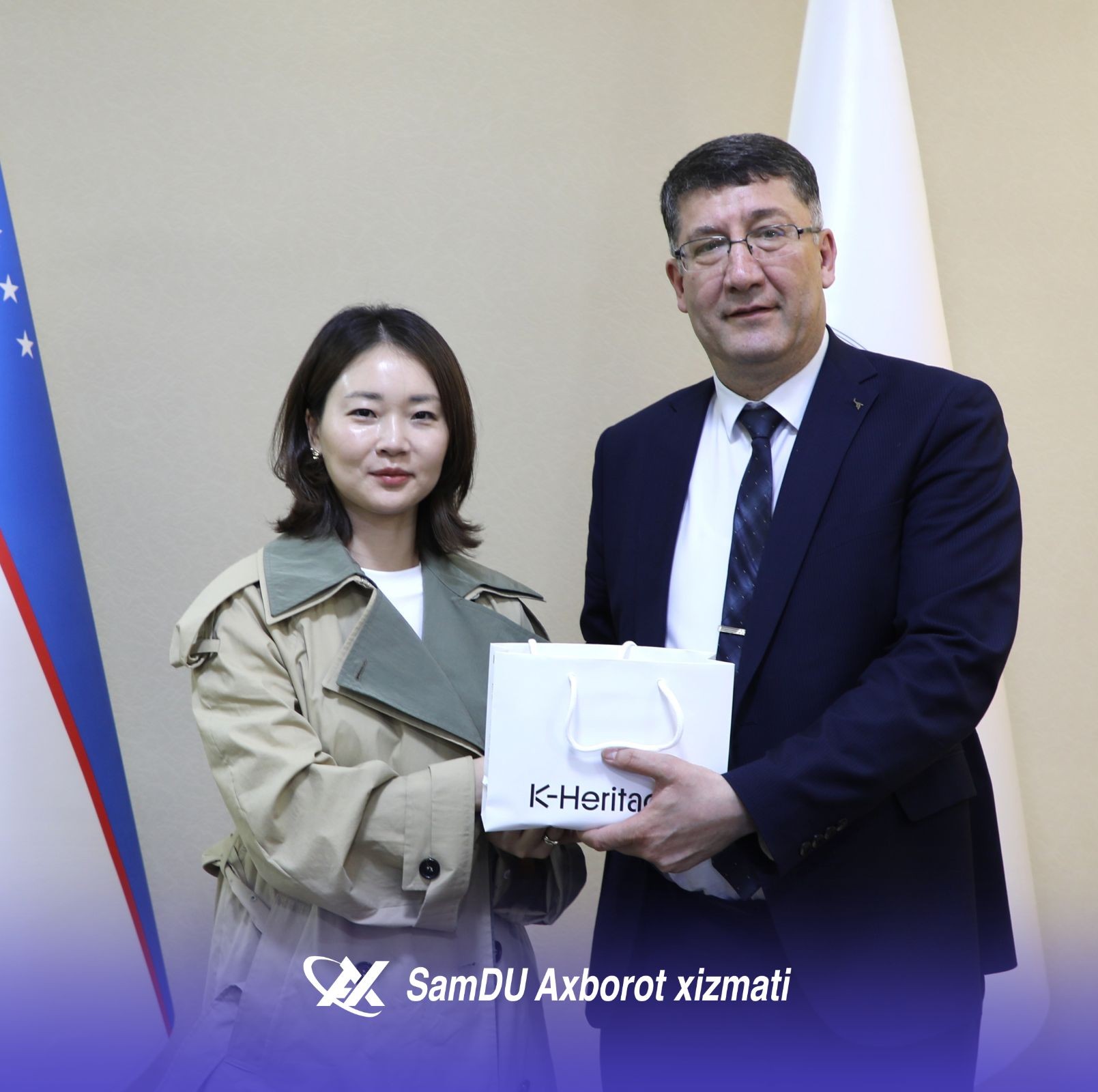 Sharof Rashidov nomidagi Samarqand davlat universitetiga Koreya Respublikasining Kvandju shahrida joylashgan “Art Bridge 27” tashkiloti bosh direktori Jeong Eui-Rim boshchiligidagi delegatsiya tashrif buyurdi. Martabali mehmonlarni universitetning xalqaro hamkorlik bo‘yicha prorektori Akmal Axadov mas’ullar hamrohligida kutib oldi. Delegatsiya a’zolari bilan uchrashuvda universitetning psixologiya va ijtimoiy-siyosiy fanlar fakulteti dekani Zarifa Mo‘minova, dekan o‘rinbosari Shahzoda Ahmedova hamda universitetdagi koreys madaniyati markazi faollari ishtirok etdi.