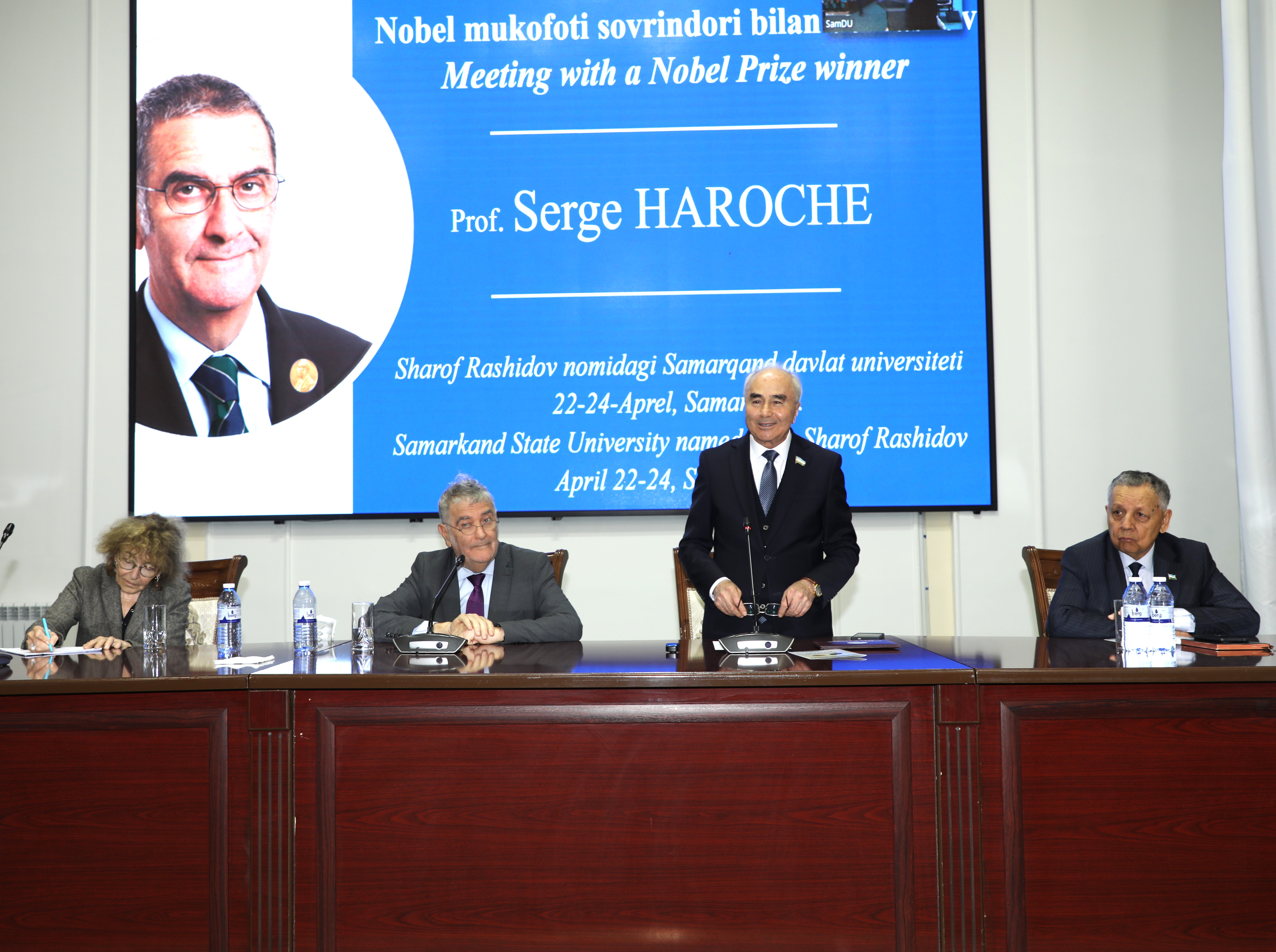 Samarqand davlat universitetiga Nobel mukofoti laureati Serge Haroche tashrif buyurdi. Martabali mehmonni universitet rektori, O‘zbekiston Respublikasi fan arbobi, Oliy Majlis Senati a’zosi Rustam Xolmurodov va boshqa mas’ullar kutib oldilar.
