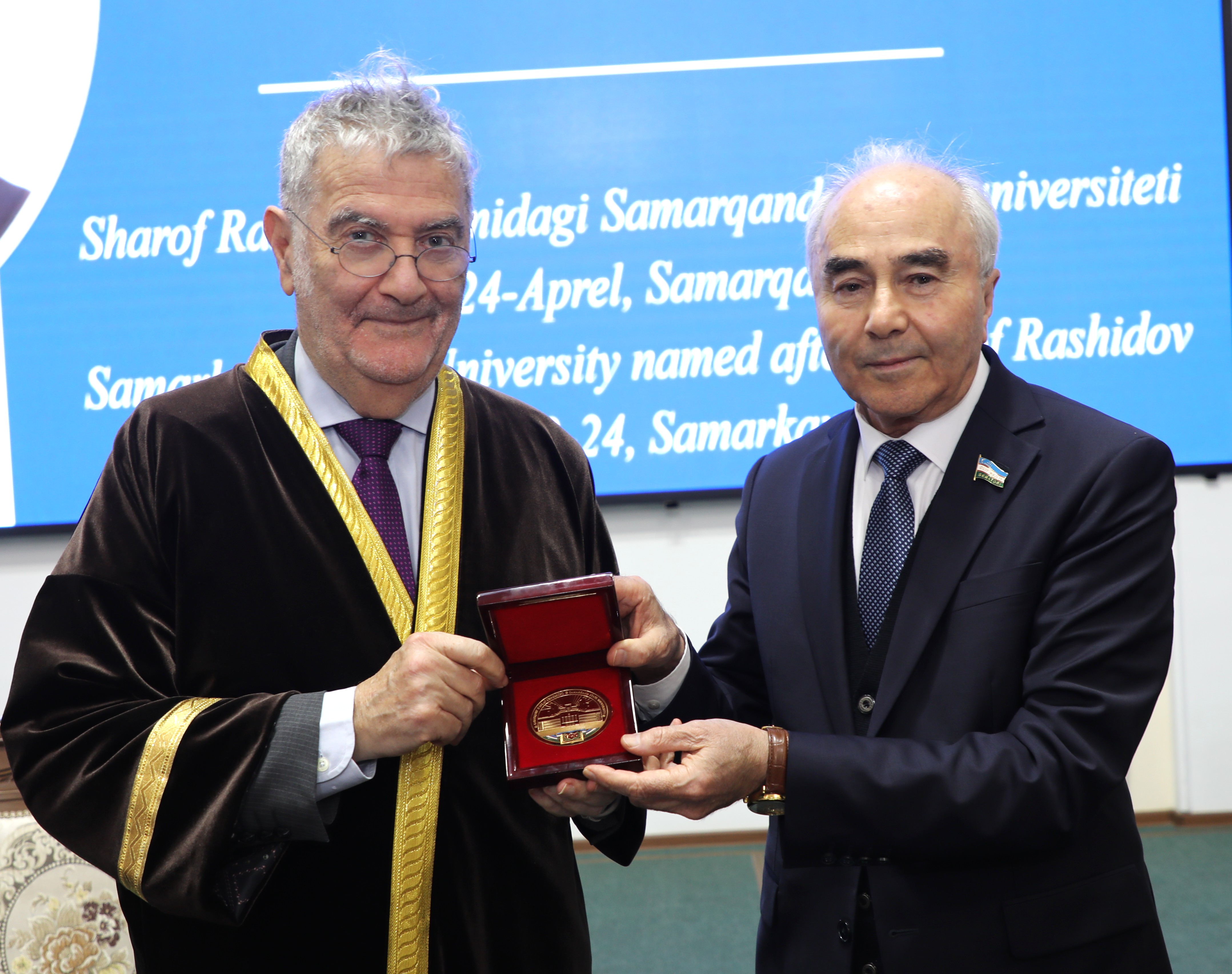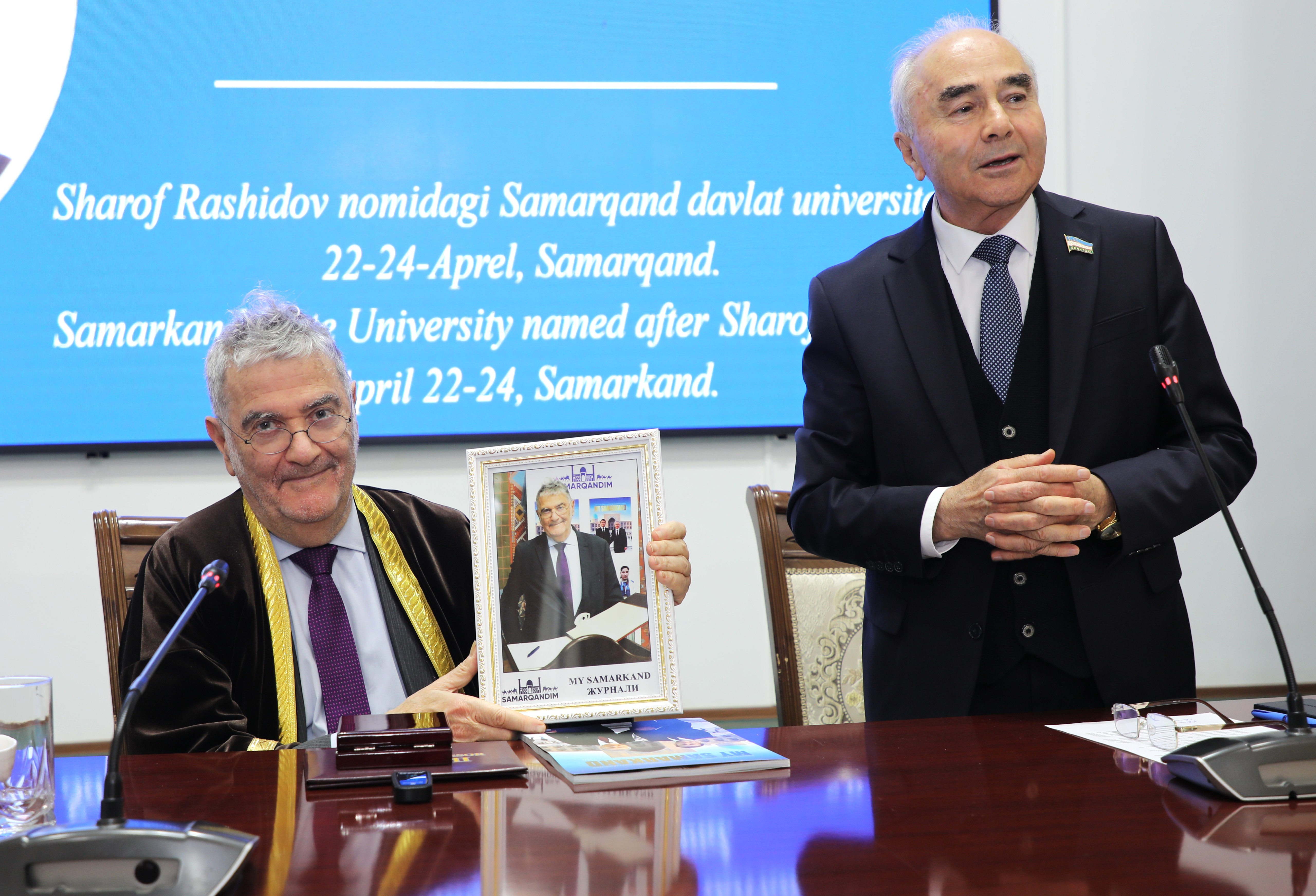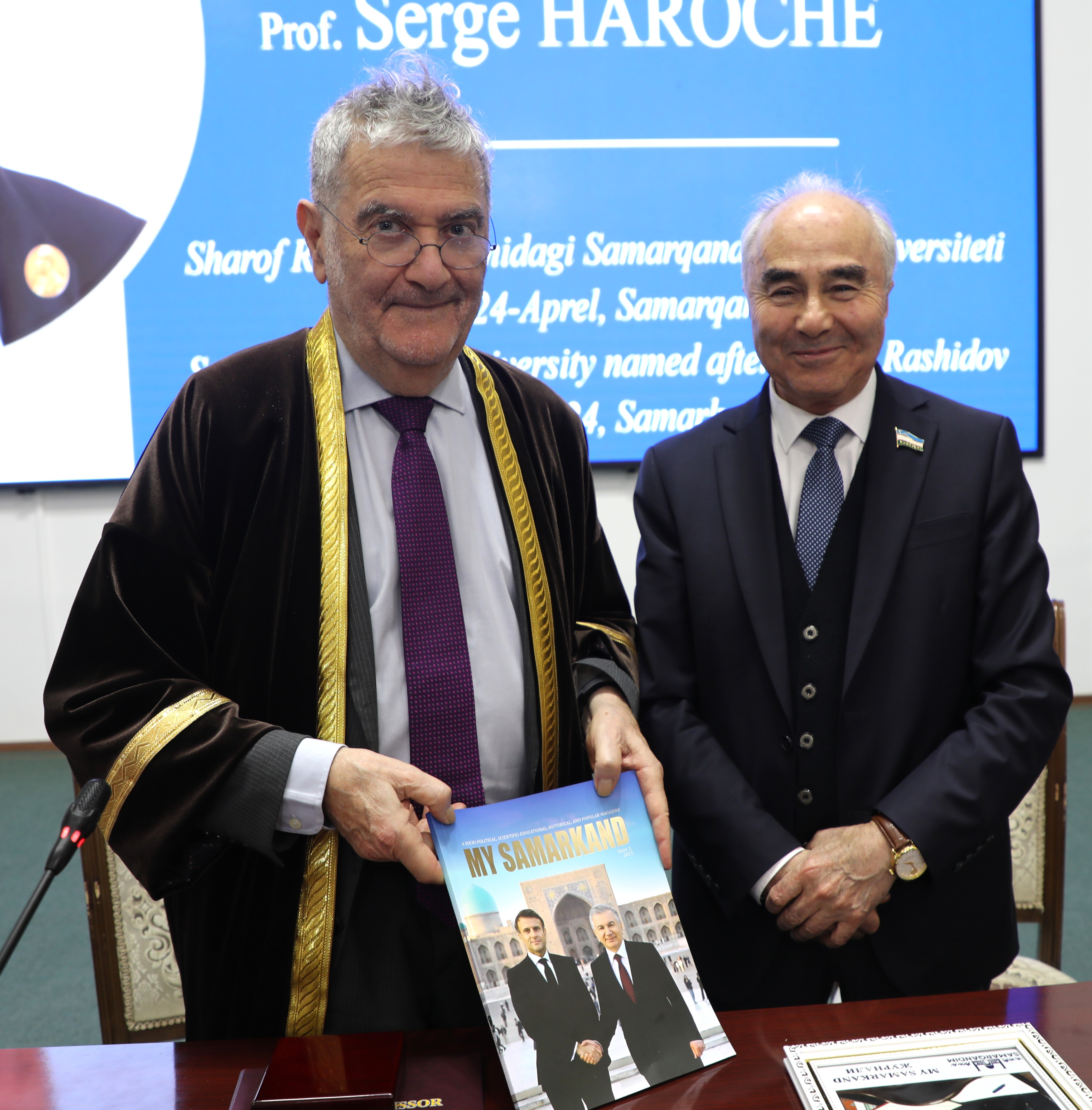 Tadbir davomida Serge Harochega Samarqand davlat universitetining Faxriy professori unvoni berildi. Rektor Rustam Xolmurodov unga tegishli guvohnomani tantanali ravishda topshirdi. Milliy an’analarga muvofiq mehmon to‘n kiydirilib, esdalik sovg‘alari taqdim etildi.