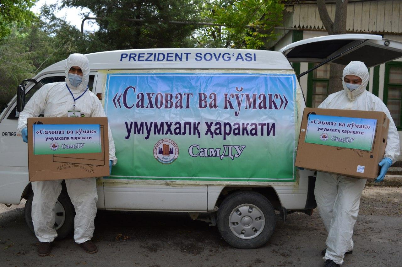 Ezgulikka yo’g’rilgan “Saxovat va ko’mak” umumxalq harakatida Samarqand davlat universiteti jamoasi ham faol ishtirok etmoqda. Universitet tomonidan aholiga ko’rsatilayotgan xizmatlar evaziga ishlab topilgan mablag’lar hisobidan Samarqand shahridagi yigirmadan ziyod mahallalarda istiqomat qiluvchi o’nlab kam ta’minlangan, betob bo’lib yotib qolgan, nogiron va boquvchisini yo’qotgan oilalarga zaruriy oziq-ovqat mahsulotlari yetkazib berildi. Mehr-muruvvat tadbirida shahardagi Maqsud Shayxzoda, Ziyokorlar, Orzu, Nurli yo’l, Baraka, Oltin Asr, Temiryo’lchi, Tutzor, Farobiy, Rahmatobod, Ali Qushchi nomidagi, Adolat, Beruniy, Mevazor nomidagi mahalla fuqarolar yig’inlari hududlarida yashovchi iqtisodiy nochor, moddiy yordamga muhtoj kam ta’minlanmgan oilalarga oziq-ovqat mahsulotlari ulashildi. Bunday oilalarning har biriga pul mablag’i hamda zarur oziq-ovqat mahsulotlari jamlangan qutilar tarqatildi. Albatta, bu ishlar bugungi kun talabiga qat’iy rioya qilingan holda, sanitariya talablari asosida amalga oshirilmoqda